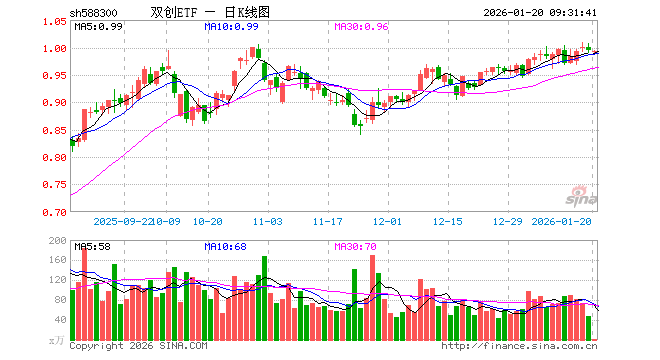1月20日,双创ETF(588300)开盘跌0.40%,报0.990元。双创ETF(588300)重仓股方面,宁德时代开盘涨0.32%,新易盛跌0.41%,中际旭创涨0.00%,寒武纪跌0.19%,中芯国际跌0.23%,阳光电源跌0.29%,海光信息涨1.97%,澜起科技跌0.68%,胜宏科技跌0.90%,汇川技术跌0.32%。