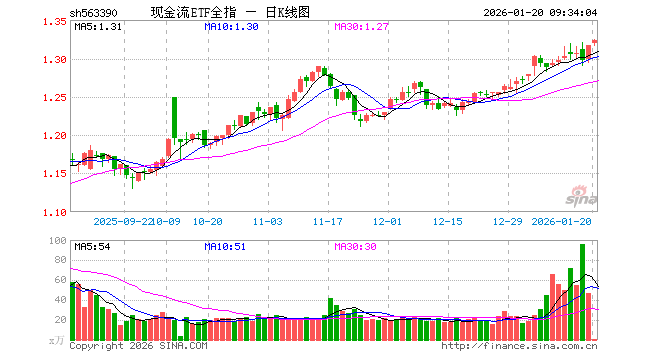 现金流ETF全指(563390)业绩比较基准为中证全指自由现金流指数收益率,管理人为华泰柏瑞基金管理有限公司,基金经理为胡亦清,成立(2025-04-23)以来回报为31.50%,近一个月回报为4.99%。