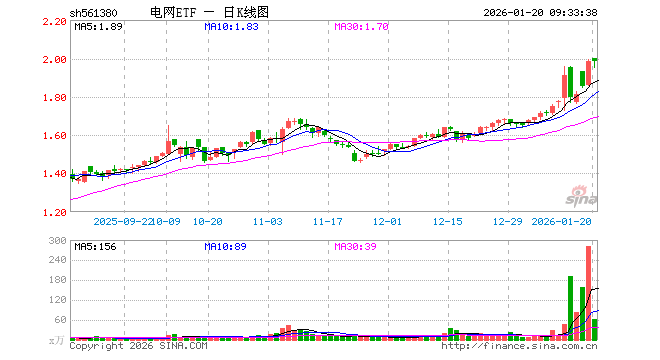 1月20日,电网ETF(561380)开盘涨0.76%,报2.001元。电网ETF(561380)重仓股方面,新易盛开盘跌0.41%,国电南瑞涨0.76%,特变电工涨1.31%,思源电气跌1.00%,中天科技涨0.00%,亨通光电涨1.18%,东方电缆涨0.51%,宏发股份涨0.21%,浙江荣泰涨0.89%,特锐德跌0.27%。
