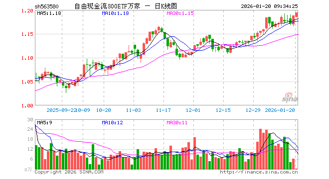 自由现金流ETF800(563580)业绩比较基准为中证800自由现金流指数收益率,管理人为万家基金管理有限公司,基金经理为贺方舟,成立(2025-07-16)以来回报为18.80%,近一个月回报为5.02%。