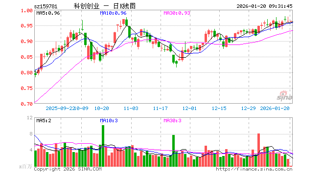 1月20日,科创创业ETF易方达(159781)开盘跌0.31%,报0.961元。科创创业ETF易方达(159781)重仓股方面,宁德时代开盘涨0.32%,新易盛跌0.41%,中际旭创涨0.00%,中芯国际跌0.23%,寒武纪跌0.19%,阳光电源跌0.29%,海光信息涨1.97%,澜起科技跌0.68%,胜宏科技跌0.90%,汇川技术跌0.32%。