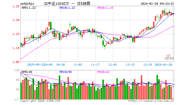 1月20日,中证A500ETF(560510)开盘跌0.16%,报1.218元。中证A500ETF(560510)重仓股方面,宁德时代开盘涨0.32%,贵州茅台涨0.25%,中国平安涨0.08%,招商银行涨0.05%,紫金矿业涨0.00%,新易盛跌0.41%,中际旭创涨0.00%,美的集团涨0.05%,东方财富跌0.04%,长江电力涨0.00%。