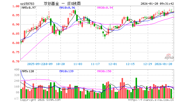 1月20日,科创创业50ETF(159783)开盘跌0.10%,报0.967元。科创创业50ETF(159783)重仓股方面,宁德时代开盘涨0.32%,新易盛跌0.41%,中际旭创涨0.00%,中芯国际跌0.23%,寒武纪跌0.19%,阳光电源跌0.29%,海光信息涨1.97%,澜起科技跌0.68%,胜宏科技跌0.90%,汇川技术跌0.32%。