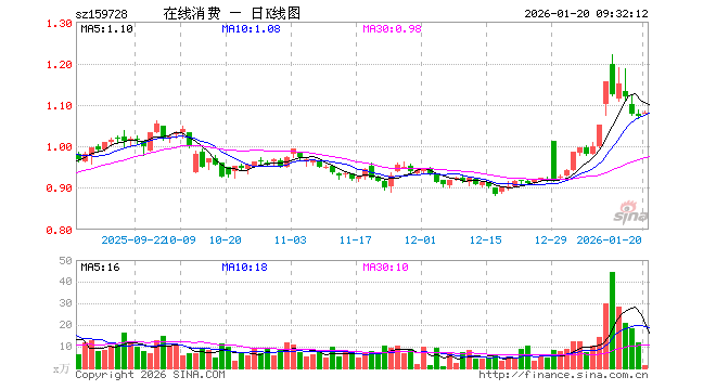 1月20日,在线消费ETF南方(159728)开盘涨0.84%,报1.080元。在线消费ETF南方(159728)重仓股方面,歌尔股份开盘涨0.13%,科大讯飞涨0.74%,巨人网络涨3.72%,恺英网络涨0.68%,昆仑万维涨1.29%,拓维信息涨0.24%,三七互娱涨1.18%,光线传媒涨0.47%,神州泰岳涨0.64%,安克创新涨0.97%。