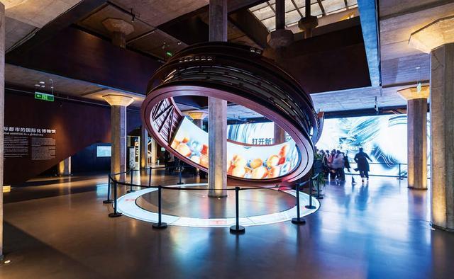 上海杨浦滨江世界技能博物馆一层展厅中央巨型的艺术装置——“世界引擎”。