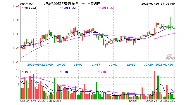 1月20日,沪深300ETF增强基金(561000)开盘涨0.23%,报1.319元。沪深300ETF增强基金(561000)重仓股方面,宁德时代开盘涨0.32%,贵州茅台涨0.25%,中国平安涨0.08%,立讯精密涨0.07%,紫金矿业涨0.00%,海光信息涨1.97%,中芯国际跌0.23%,东方财富跌0.04%,美的集团涨0.05%,长江电力涨0.00%。