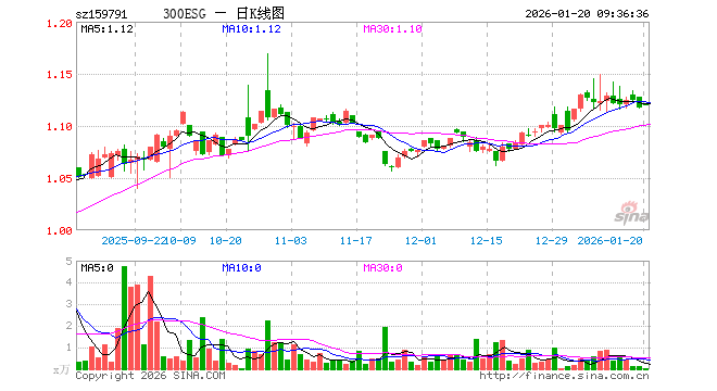 1月20日,300ESGETF华夏(159791)开盘涨0.27%,报1.120元。300ESGETF华夏(159791)重仓股方面,宁德时代开盘涨0.32%,贵州茅台涨0.25%,招商银行涨0.05%,中际旭创涨0.00%,长江电力涨0.00%,美的集团涨0.05%,比亚迪涨0.03%,兴业银行涨0.00%,工商银行跌0.13%,恒瑞医药涨0.02%。