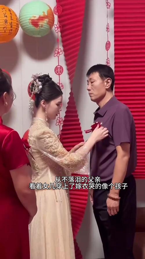 父爱如山,泪洒婚礼 婚礼现场,父亲独自将女儿的手交到新郎手中。他眼眶泛红,泪水夺眶而出。多年独自抚养的艰辛,此刻都化作不舍。他用颤抖的双手,为女儿整理头纱,那无声的哽咽,写满了对女儿深深的爱与祝福。爸爸瞬间落泪