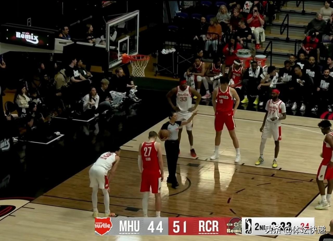 杨瀚森就这样在G联赛和主队之间来回折腾,上一场G联赛得到最高分、这一场G联赛拿到