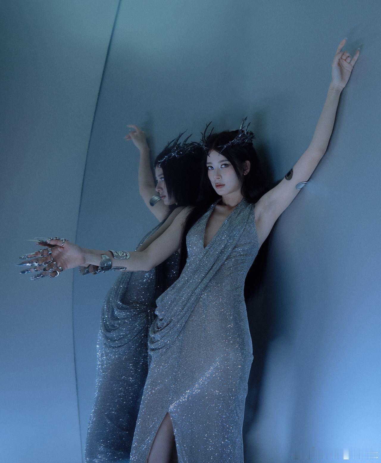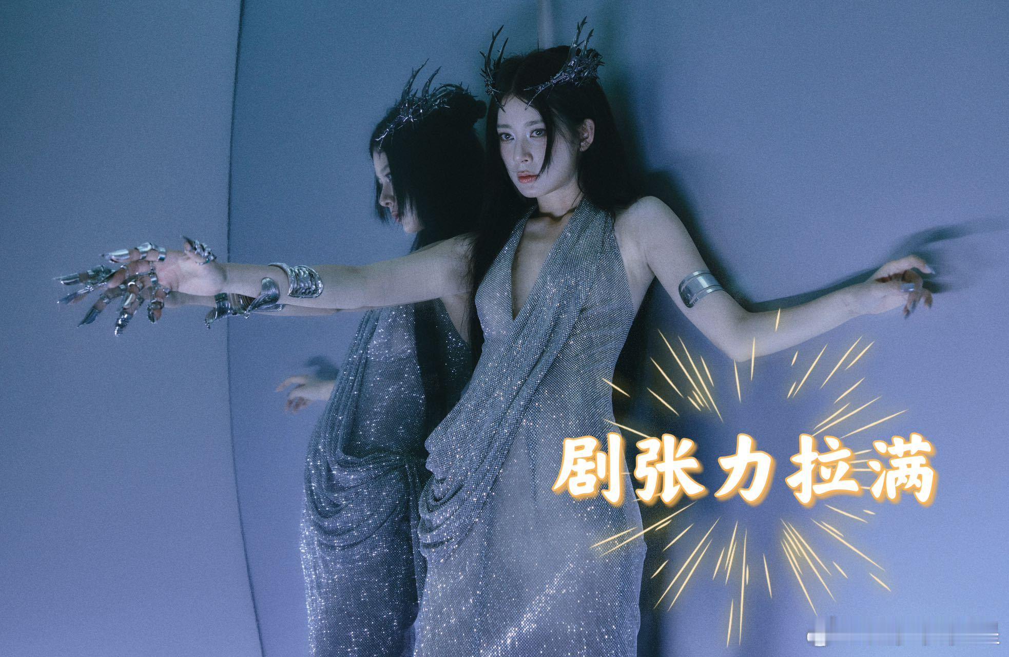 赵昭仪好有剧张力的造型赵昭仪好有剧张力的造型!挂脖银裙配冷冽气质,赛博范儿十足,