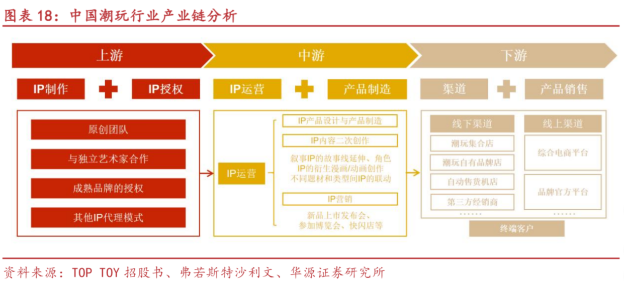 潮玩经济从功能性向情感性消费转型,2025-2030年国内规模CAGR预计为21%。根据国家统计局,全国规模以上文化企业的营业收入从2019年的8.7万亿元增至2024年的14.15万亿元,产业基本盘稳健。文创产品消费主要由消费者兴趣驱动,而情绪和文化价值、设计感以及纪念意义是最能促进消费者购买的爽点。根据TOPTOY招股书和弗若斯特沙利文,潮玩可分为手办、3D拼装模型、搪胶毛绒等。中国潮玩行业呈现快速增长趋势,零售额由2019年的207亿元跃升至2024年的587亿元,实现23.2%的复合增长率。这一增长主要受日益增长的情绪消费所推动,潮玩日益成为个人身份认同、怀旧情感与文化归属的表达载体。