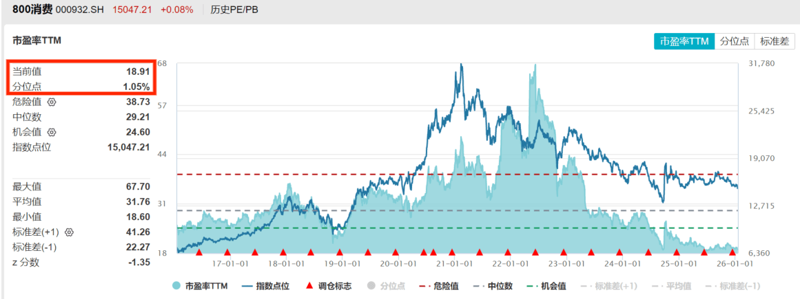 当前市场热点轮动加速,资金高低切换!聚焦大消费板块,其估值性价比仍极具吸引力。截至1月16日,消费ETF(159928)标的指数市盈率TTM为18.91倍,处于近10年1.05%分位点,比近10年历史上近99%的时间便宜,估值性价比更高!
