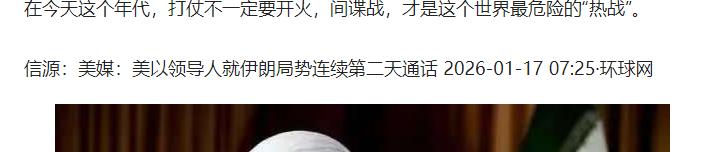 内塔尼亚胡亲自打电话“求饶”:不是怕伊朗报复,而是600名摩萨德特工名单已经泄露。 很多人可能都没留意到,美军那架被称为“末日飞机”的E-4B,突然紧急升空。这架飞机轻易不动,一动,就意味着最高级别的危机。 几乎是同时总统特朗普公开发话,取消了所有和伊朗的谈判计划。而在波斯湾,美国的航母战斗群已经部署到位。空气里的火药味,浓到所有人都能闻到,一场大战似乎下一秒就要爆发。 要知道,就在几周前,以色列总理内塔尼亚胡才刚访问过华盛顿,他当时的态度非常明确,公开支持对伊朗采取最强硬的军事手段。 眼看白宫的攻击命令就要下达,一通从特拉维夫打来的紧急电话,却硬生生叫停了所有部署。电话里,内塔尼亚胡的请求只有一个,立即停止行动。 这个急转弯让所有人都愣住了。一直表现得最强硬的以色列,怎么突然第一个踩了刹车?答案,出现在伊朗的城市里。在那里,一场没有硝烟的战斗刚刚结束,而以色列输得彻彻底底。 就在美军调兵遣将的时候,以色列情报机构摩萨德在伊朗经营了几十年的情报网络,被对方整个端掉了。 一份代号为“Naem”的绝密文件被泄露,里面清清楚楚地记录了摩萨德在伊朗的所有秘密行动。 更致命的是,文件里有特工的真实身份、联络方式、任务细节,甚至还有完整的上下级指挥体系。伊朗安全部门拿到这份名单后,立刻动手。 在不到两周的时间里,德黑兰、伊斯法罕等伊朗核心城市,超过七百名嫌疑人被捕。据说,名单上光是摩萨德的核心特工和关键线人,就有六百个。 这些人,过去是执行暗杀伊朗核科学家、破坏关键设施的“幽灵”,现在,他们的身份、住址、家人全都被曝光了。 这张经营多年的情报网络被一锅端,以色列等于在最危险的对手面前,瞬间失去了获取一手信息和执行秘密打击的能力。 这场情报上的灾难,对以色列造成的实际损害,不亚于一次针对其本土的直接军事打击。 理解了这一点,内塔尼亚胡那通电话的动机就再清楚不过了,他是在止损。他心里明白,一旦美军开火,伊朗方面完全可以利用战争状态作掩护,对自己国内进行一次最彻底的清洗。 到时候,任何还未暴露的以色列特工都难逃一劫,营救和撤离更是想都别想。 美国的炮弹不仅救不了以色列的人,反而会成为伊朗抓捕行动的完美烟幕弹。所以,内塔尼亚胡必须赶在美国动手之前,强行按下暂停键。 他迫切需要时间,来评估损失到底有多大,看看还能不能救出幸存者,以及思考如何重建这条已经被彻底摧毁的情报战线。 对以色列来说,保住情报战线上残存的火种,比赢得一次公开的军事打击重要得多。他们比谁都清楚,一张有效的情报网,价值远超任何先进的导弹。 眼看局势突变,海湾国家也坐不住了。沙特、卡塔尔和阿曼接连出面,劝说美国千万别动手。 他们是真的怕,怕战火一旦烧起来,会直接波及自家的油田和脆弱的霍尔木兹海峡。 摩萨德神话的破灭,也让这些一直依赖外部安全保护的国家,开始重新审视自己的处境。 最终,特朗普政府宣布暂缓军事行动,波斯湾上空紧绷的弦暂时松了下来。但所有人都知道,冲突并未结束,只是从真枪实弹的战场,转入了更隐秘的角落。 内塔尼亚胡的这通电话说明了,在今天,能让航母战斗群停下的,不一定非得是另一支舰队,有时候,一份泄露的文件就够了。 信息来源:《美媒:美以领导人就伊朗局势连续第二天通话》,环球网,2026年1月17日。