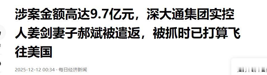 又揪出来一个巨贪,金额高达9.7亿,首富夫人郝斌跨境逃亡失败了。 2025年12月1日凌晨3点47分,马尼拉国际机场,一名身穿灰色风衣、戴着墨镜的中年女性刚刚通过登机口,准备前往洛杉矶。 2025年12月11日,地点在马尼拉的尼诺·阿基诺国际机场。转机柜台前,一个中年女人正在排队,衣着寻常,混在人群里毫不起眼。 几名菲律宾移民官员悄然向她靠近,动作不大,没引起周围旅客的注意。可当他们的目光对上时,女人瞬间明白了。她持续了三年的跨国逃亡路,在这里走到了终点。 这个用假护照旅行的女人,就是国际刑警组织红色通缉令上的郝斌。她以为马尼拉只是一个中转站,下一站就是美国。 然而,她精心策划的逃亡路线,从新加坡到马尼拉再到美国,在今天的大数据系统面前,反而成了暴露自己的信号链。 每一次用化名订票,每一次规划行程,信息都会进入不同机构的数据库。国际刑警组织、各国的出入境管理部门、航空公司,这些过去相对独立的系统早已联网。 而郝斌之所以要逃,是因为她几乎搬空了自己所在的家族企业。在青岛前首富姜剑的家族里,她远不是一个挂名的夫人。 项目审批、资金调拨,这些最核心的权力都握在她手里,名下关联着十几家公司,深度介入集团的地产业务。 那笔将近9.8亿的巨款,是她分批、分步骤,用好几年时间慢慢转移的。比如,凭空做一个大型开发项目的方案,合同、预算都做得天衣无缝。 凭借她在集团内部的权威,项目审批总能一路绿灯。可资金一旦拨出,项目就永远停留在纸上,钱则通过层层嵌套的公司,最终流进她的个人腰包。 她还控制着大量由亲信代持的空壳公司。集团的资金以采购设备、外包服务的名目,看起来完全合规地支付给这些公司。 实际上,这些公司只是她的私人账户,就这样把集团的资产一块块转走。内部的财务和审计人员什么也查不出来,因为他们看到的所有文件、合同、签字,手续都是齐全的。 即便是在真实的项目里,她也有办法。通过签署复杂隐蔽的补充协议,大幅抬高工程结算价格,多出来的钱,就直接打进了她指定的账户。 抓到郝斌,对专案组来说,工作只完成了一半。更艰巨的任务,是追回那近十亿的赃款。人可以依靠国际执法协作遣返回国,但钱早已通过复杂的渠道散落在世界各地。 这些钱可能已经变成了纽约的公寓、伦敦的股票、瑞士银行里的某个理财产品,或者干脆通过地下钱庄和加密货币,被洗得干干净净,难以追踪。 以往的国际大案,比如马来西亚的“一马公司”案,巴西的“洗车行动”,虽然也追回了部分资产,但远不及流失的全部。 跨国追赃,能追回七成就是极为成功的案例。办案人员必须向不同国家的司法系统提交山一样高的证据,去证明某栋豪宅、某笔投资,其资金来源就是郝斌的赃款。 这个案子最终能追回多少,不仅是对专案组的考验,也是对我们国际司法协作能力的检验。 同时,它也给所有大企业提了醒,想靠换个地方、换个身份来逃避责任,在今天这个世界,已经几乎不可能了。 信息来源:《涉案金额高达9.7亿元,深大通集团实控人姜剑妻子郝斌被遣返,被抓时已打算飞往美国》,每日经济新闻,2025年12月12日。