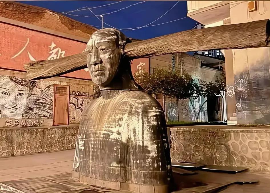 这座雕像的头部被一根木头横横的插入,让人看不明白,也让人不禁心生疑问,这种老百姓既看不懂又毫无美感的东西,做出来究竟有何意义。