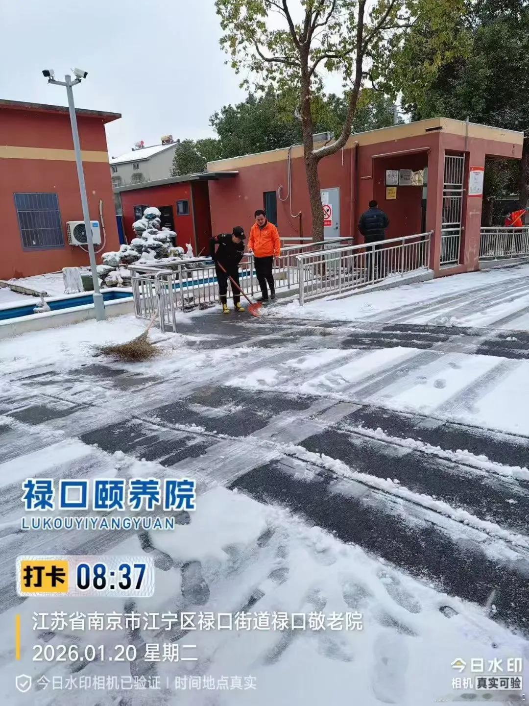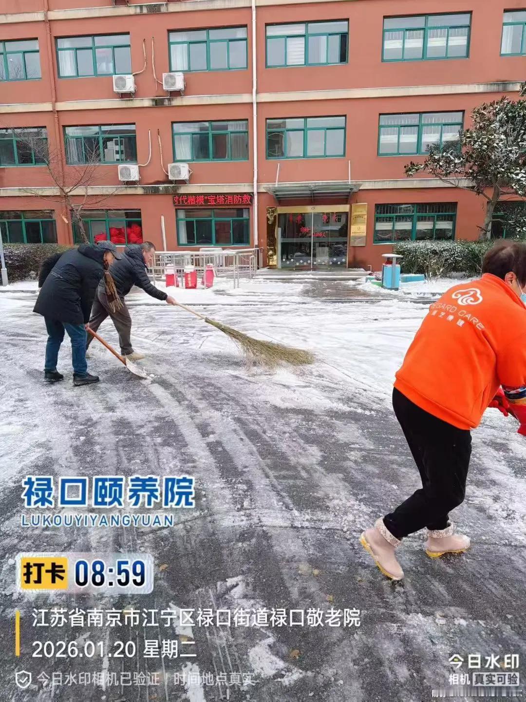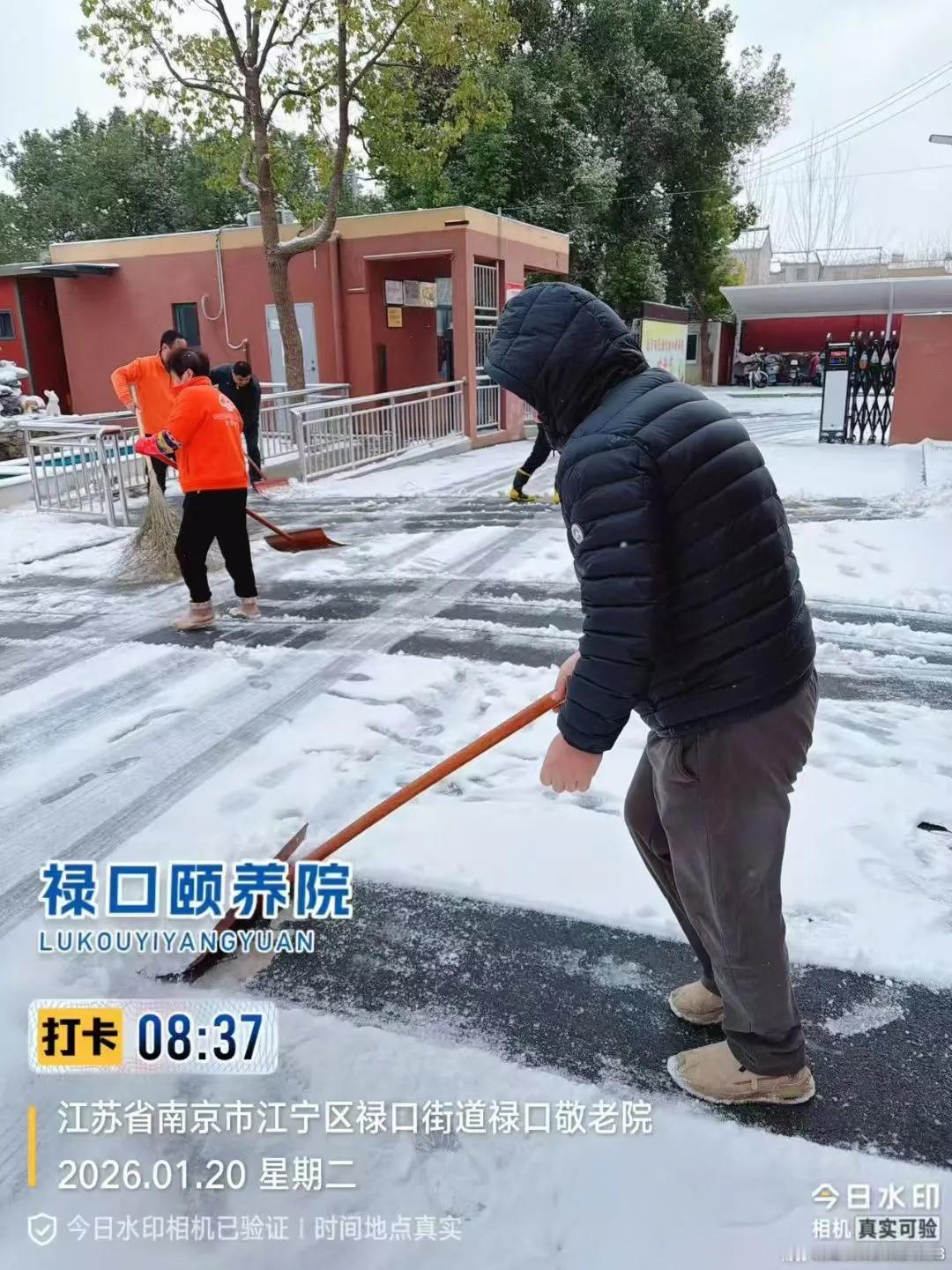 初雪——禄口颐养院忙碌的工作人员,为您的安全保驾护航!(瑞芝康小杨) 养老院的工作人员各项工作做的好!