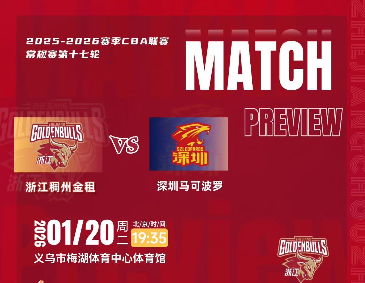 今晚CBA常规赛,浙江将主场迎战深圳。