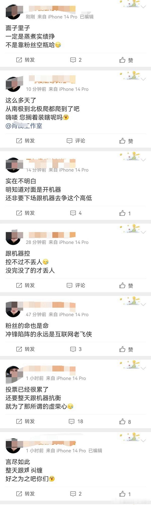 “大家都把你们当笑话看的”“以前还能55开,现在10/0开,他们是10,机器升级了吗”“投不过不丢人,没完没了才丢人”“粉丝累了”