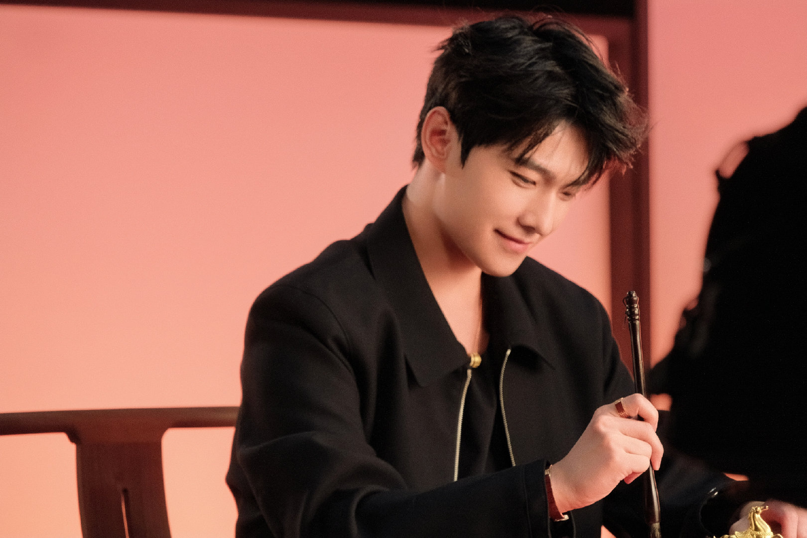 杨洋杨洋东方贵公子杨洋金锁衬墨衣暖光里执笔的模样,像从旧画报里走出来的东方贵公子