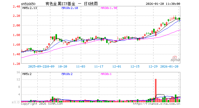 1月20日,截止午间收盘,有色金属ETF基金(516650)跌1.31%,报2.107元,成交额3.04亿元。有色金属ETF基金(516650)重仓股方面,紫金矿业截止午盘跌1.45%,北方稀土跌3.88%,洛阳钼业跌2.79%,华友钴业跌2.30%,山东黄金跌2.19%,赣锋锂业跌0.46%,中国铝业跌0.45%,中金黄金跌1.82%,赤峰黄金跌1.74%,天齐锂业涨0.77%。