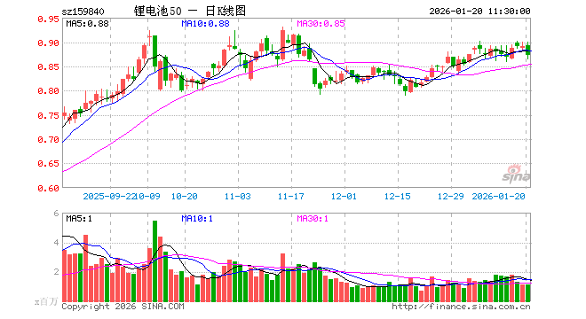 1月20日,截止午间收盘,锂电池ETF(159840)跌2.02%,报0.872元,成交额9585.04万元。锂电池ETF(159840)重仓股方面,宁德时代截止午盘涨0.97%,比亚迪跌1.36%,亿纬锂能跌2.66%,三花智控跌0.32%,华友钴业跌2.30%,先导智能跌4.50%,赣锋锂业跌0.46%,国轩高科跌3.48%,欣旺达跌3.93%,天赐材料跌2.29%。