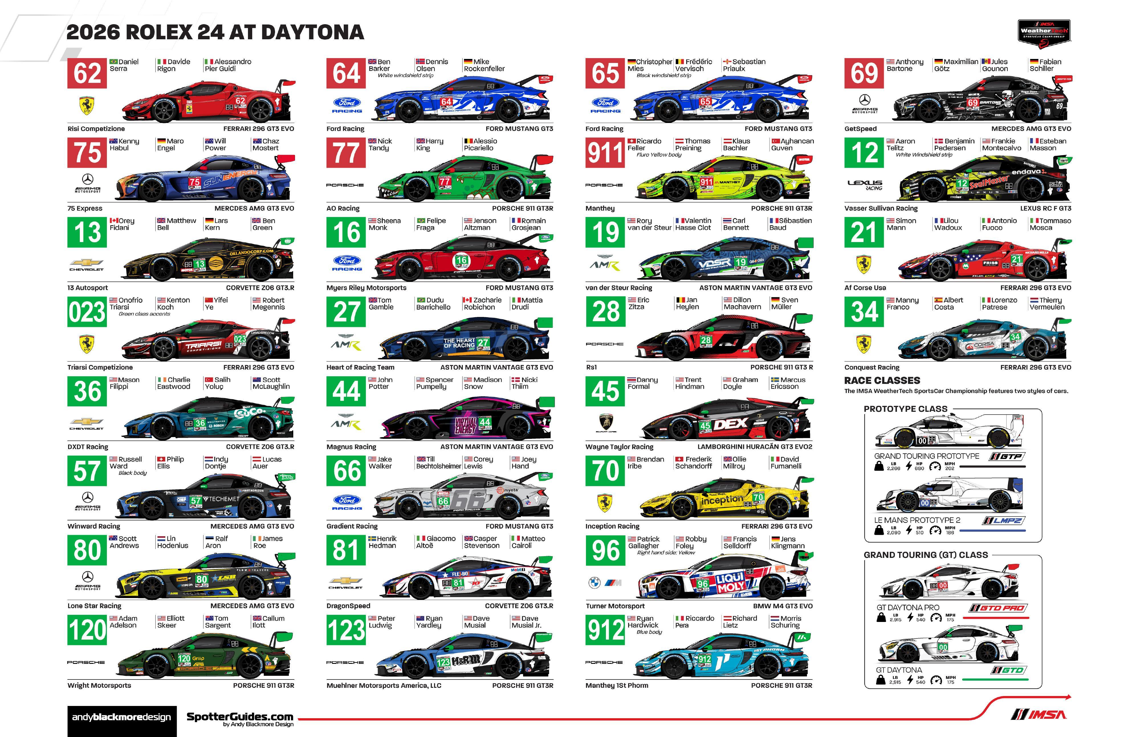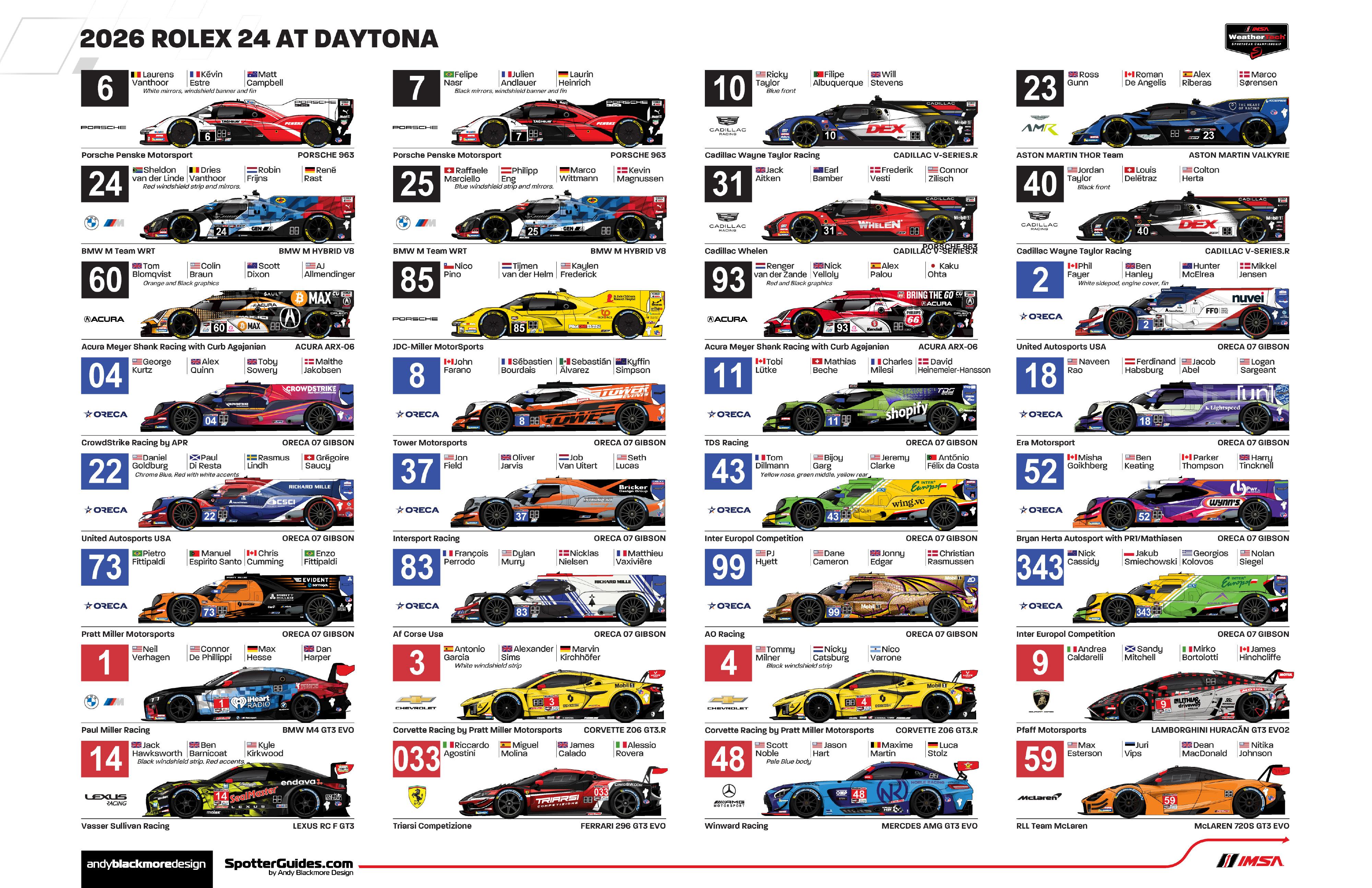 第64届戴通纳24小时耐力赛预告~2026赛季IMSA卫士泰克跑车锦标赛揭幕战本周末上演,60台赛车将进入四个组别竞争,GTP组应该还是四家LMDh制造商争冠,保时捷看似优势明显,不过讴歌、宝马和凯迪拉克都将力求阻止他们实现三连胜……🗺️ 戴通纳国际赛车场📍 美国佛罗里达州戴通纳海滩📈 5.729公里,12个弯⏱️ 1分33秒554(凯迪拉克V-Series.R,2024)🧾 IMSA跑车周末赛程(北京时间):📅 一练 ~ 1月22日 - 23:05📅 排位 ~ 1月23日 - 03:10(imsa.tv直播)📅 二练 ~ 1月23日 - 07:15📅 三练 ~ 1月24日 - 00:05📅 正赛 ~ 1月25日 - 02:40(imsa.tv直播)📺 IMSA.TV会提供直播信号,非美国IP地址免费收看,另外IMSA官方油管号也将对排位及正赛进行直播。IMSA卫士泰克跑车锦标赛戴通纳24小时耐力赛