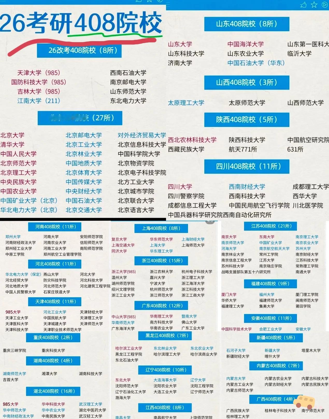 真替这帮准备考研的娃感到心梗。 刚看到消息,南京大学、浙大、哈工大这些个顶尖名校,整整30所,居然集体宣布2026年计算机考研全改考“408”了。 多少人抱着自命题资料熬了大半年,知识点都快嚼烂了,结果通知一出来,之前的努力全白费。408可不是闹着玩的,数据结构、计组、操作系统、计算机网络四门硬课打包考,知识点又多又杂,难度直接翻倍。 美其名曰追求公平、方便调剂,可完全不给缓冲期的改革,根本是在消耗考生的心血。考研本就是孤注一掷的战役,规则说改就改,太不拿考生的时间当回事了。 改革的初衷该是服务考生,而不是让他们措手不及。你觉得这种“突袭式”改考合理吗?正在备考的你会怎么调整节奏?