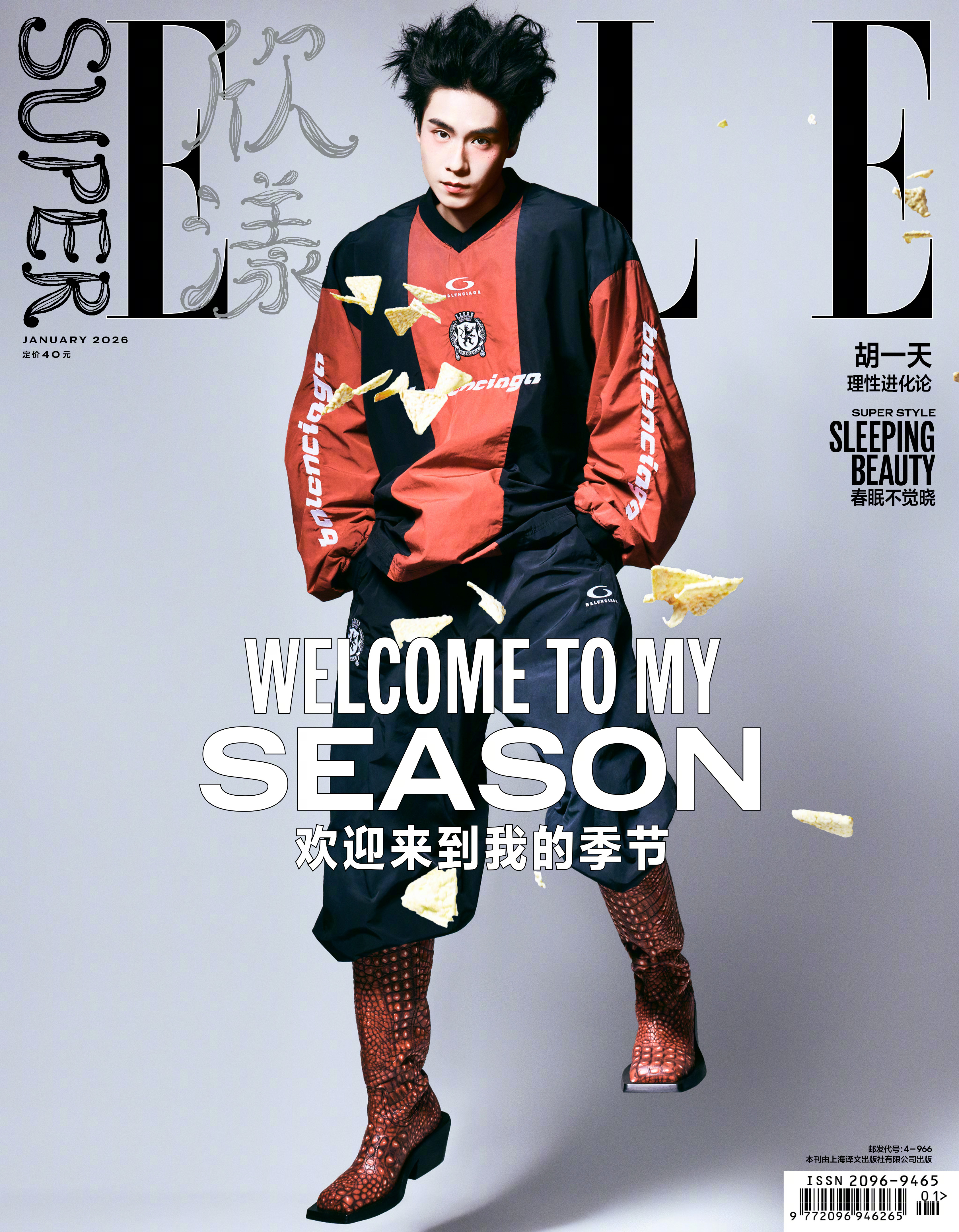 胡一天×SuperELLE January 2026演员携手SuperELLE亮相2026年一月刊封面,身着BALENCIAGA系列,在简约背景中演绎一组趣味十足的大片,开启「欣漾」新一年的视觉篇章。SuperELLE2026开年刊胡一天SuperELLE我的怪奇男友