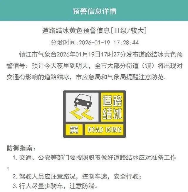 道路结冰黄色预警信号