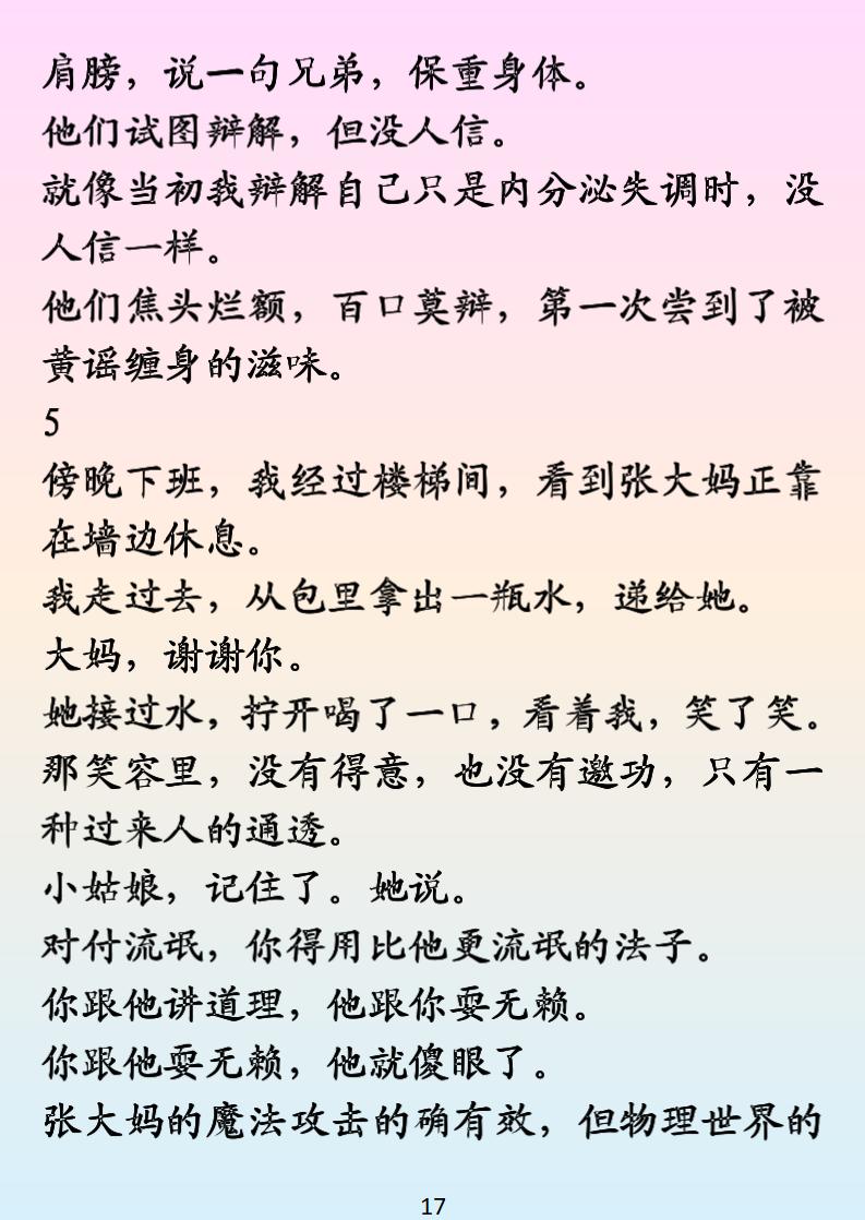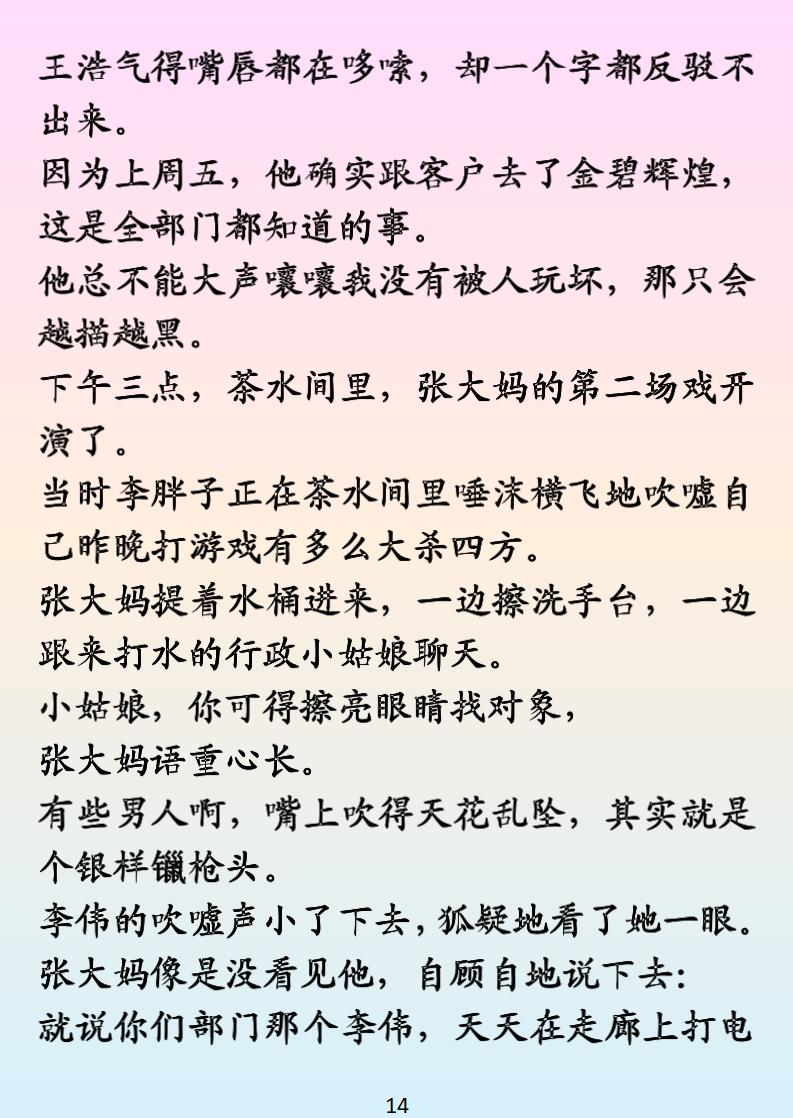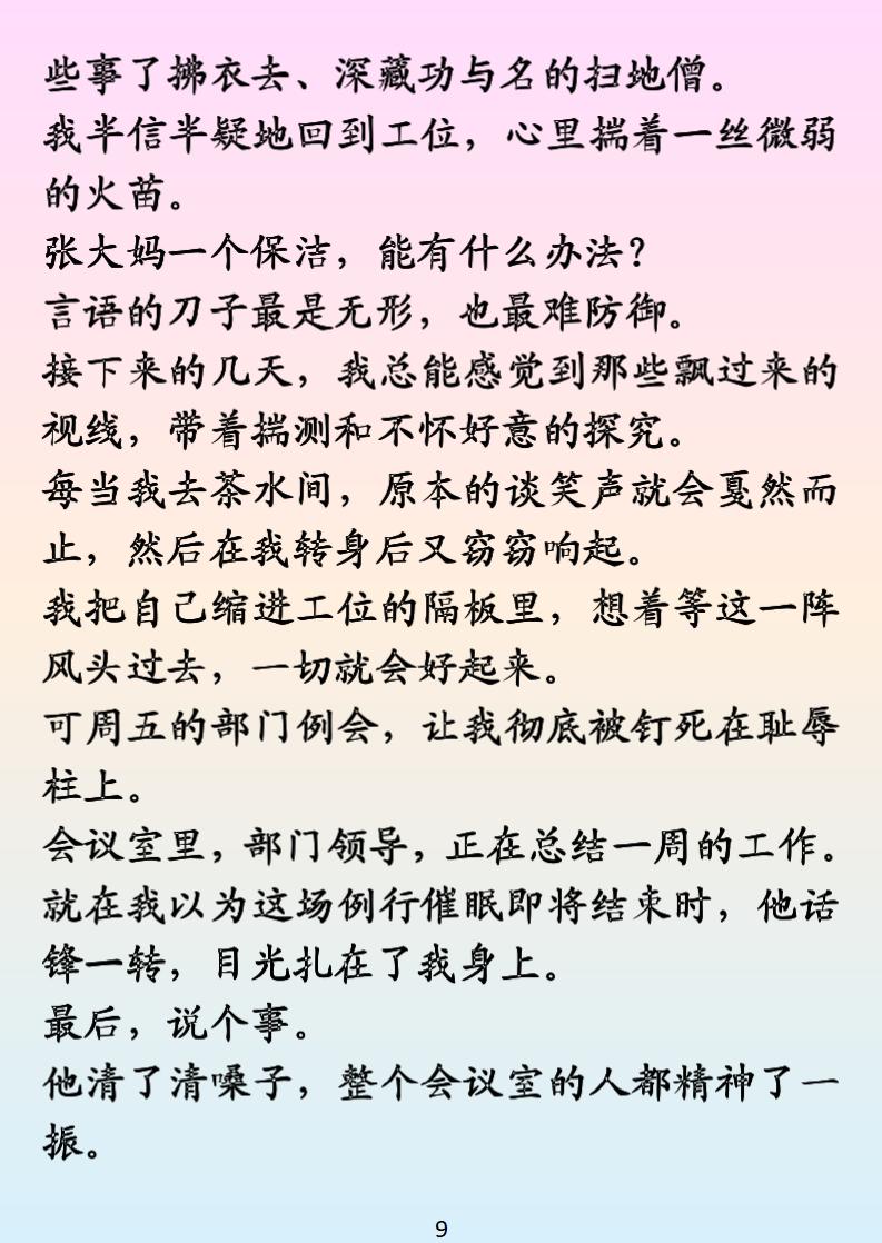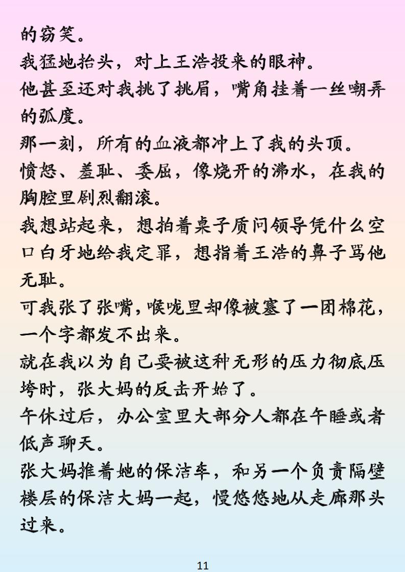 被黄谣逼到崩溃?保洁大妈硬核救场太解气! 加班俩月姨妈出走 + 重感冒,发朋友圈吐槽竟遭男同事传黄谣,还被领导暗戳戳指责作风有问题!正当我躲在楼梯间崩溃大哭,保洁张大妈拎着扫帚霸气登场 —— 精准戳穿传谣男的 “把柄”,用魔法打败魔法,让他们尝尝被八卦围剿的滋味!这部《云栖飞雪》职场反黄谣爽文,看得人通体舒畅,根本停不下来~