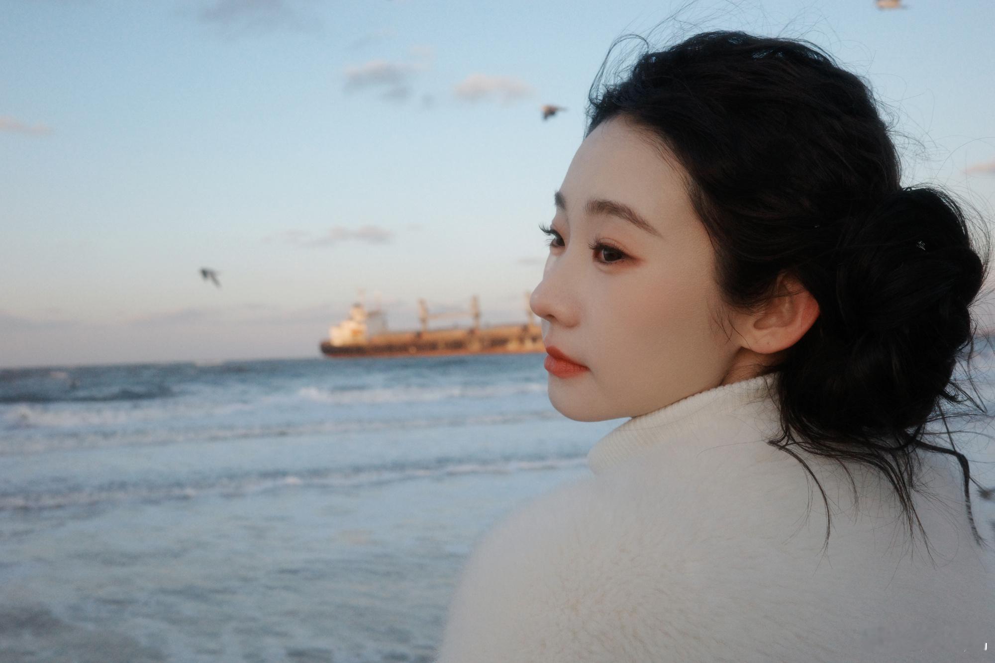 张艺凡咋萌成萨摩耶了张艺凡咋萌成这样!冬日海边的她,奶白毛茸茸,双揪揪一扎,活脱