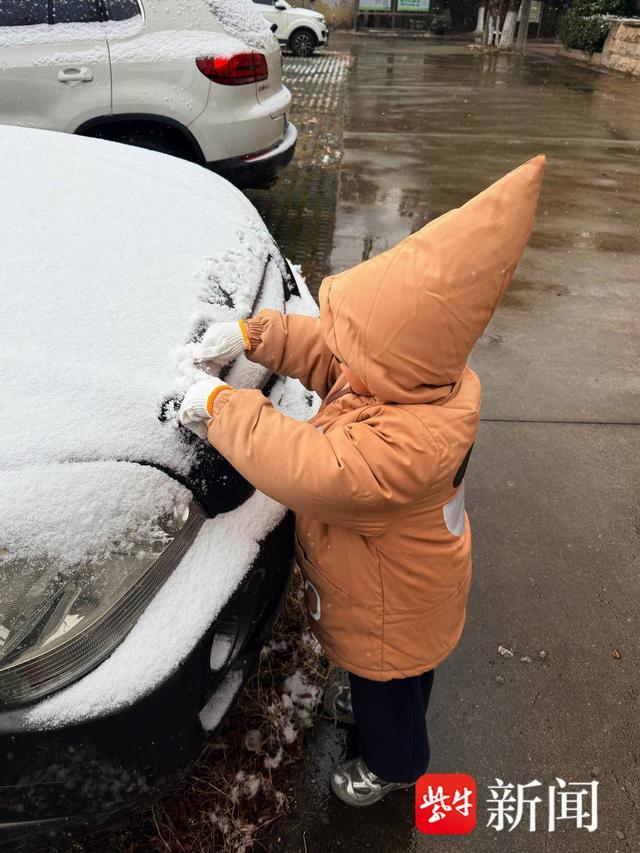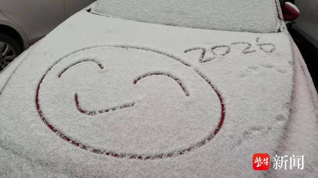 在被清理过的街道之外,一场涂鸦大赛悄然展开。汽车引擎盖上、路边围栏旁,一场即兴的“雪地涂鸦”开始出现。有人在车盖上画下一个笑脸,给2026年的第一场雪留个记号;有人用手指勾勒出小动物的轮廓,让冷白的雪面多了几分生动;孩子蹲在路边,小心翼翼地写下年份,掌心沾满雪花,却舍不得拍掉。
