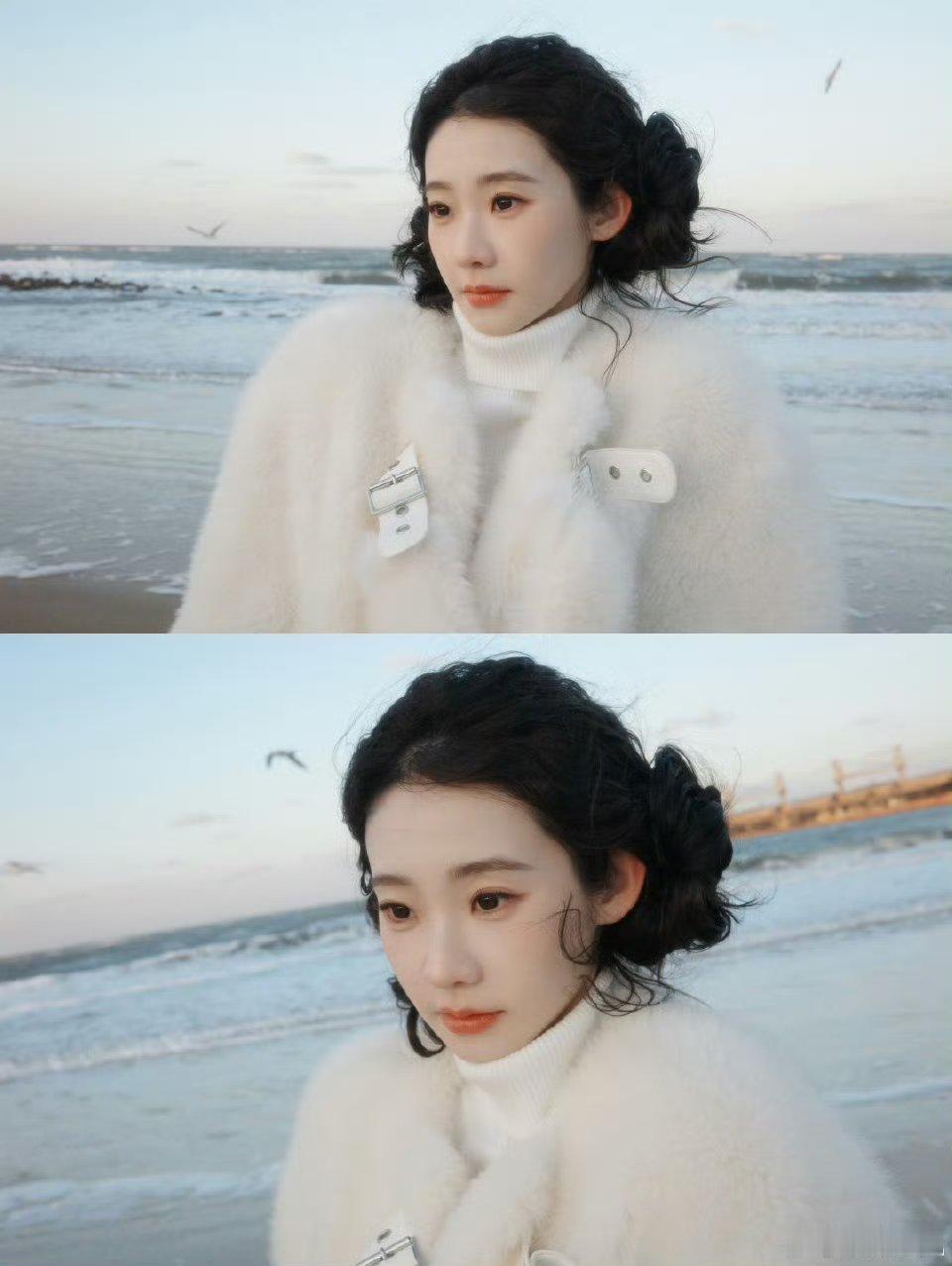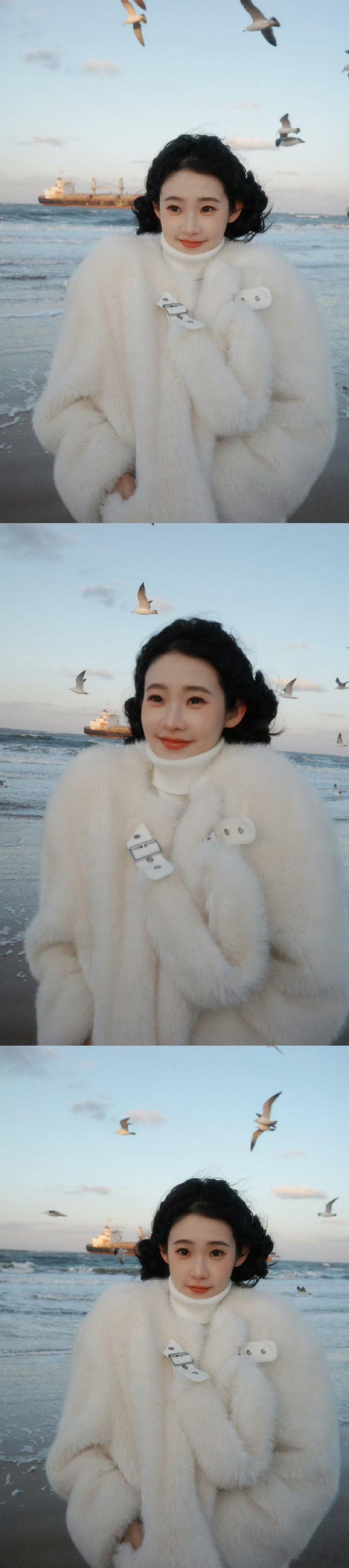 张艺凡咋萌成萨摩耶了张艺凡冬日海边造型萌化了!奶白小团子配双揪揪,毛茸茸像只萨摩