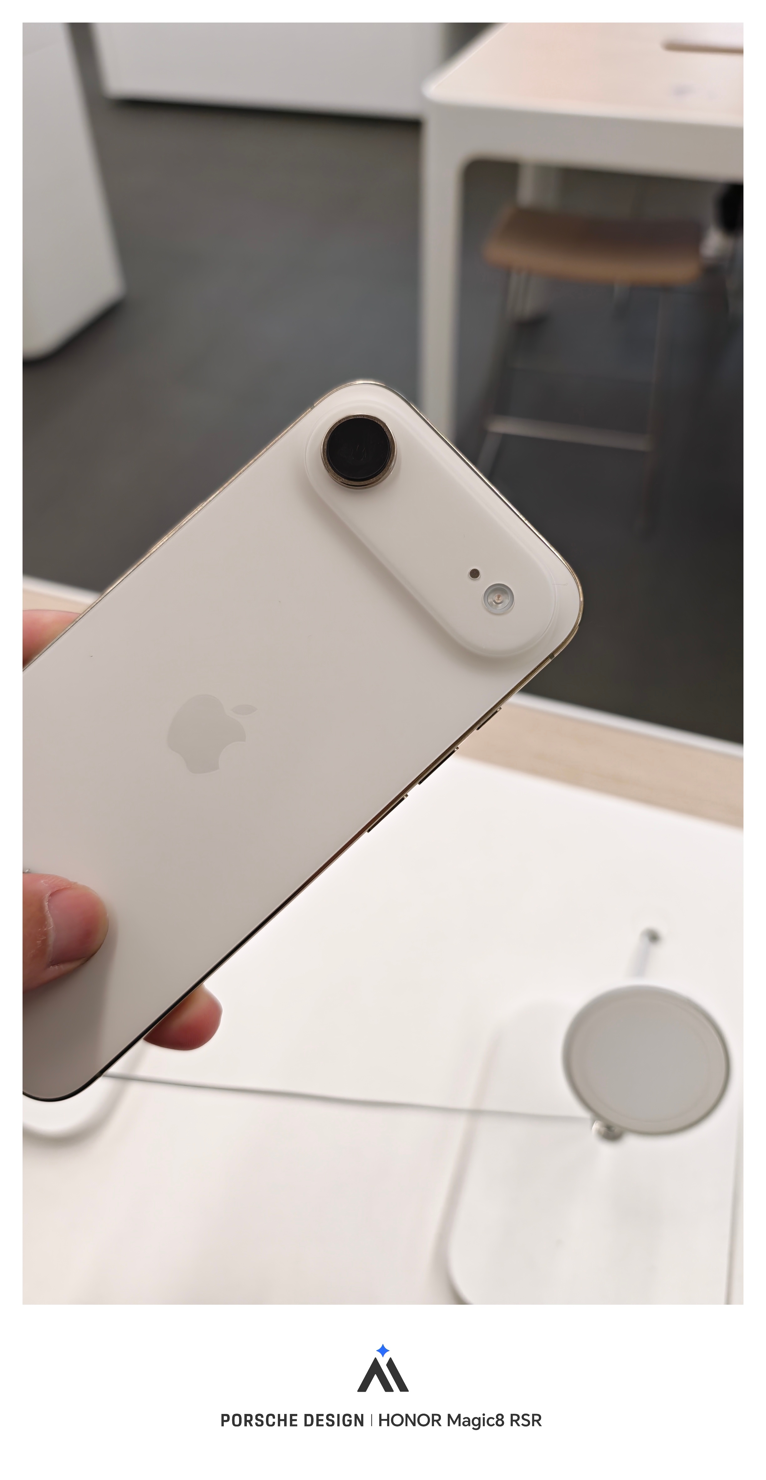 目测,荣耀AIR厚度还是比水果的AIR要厚,做了取舍,一个可以塞实体卡和长焦,一