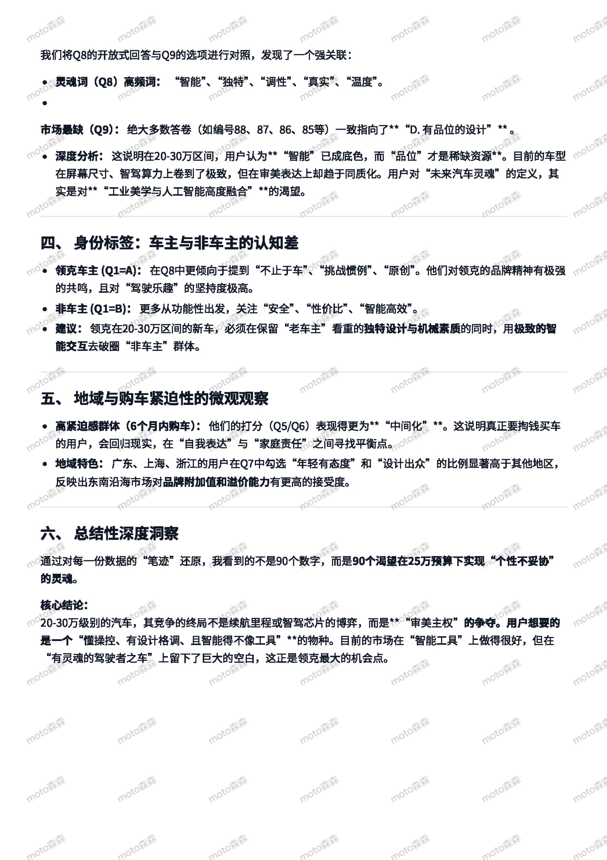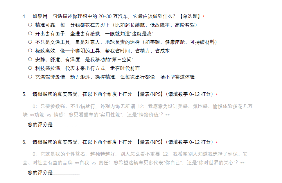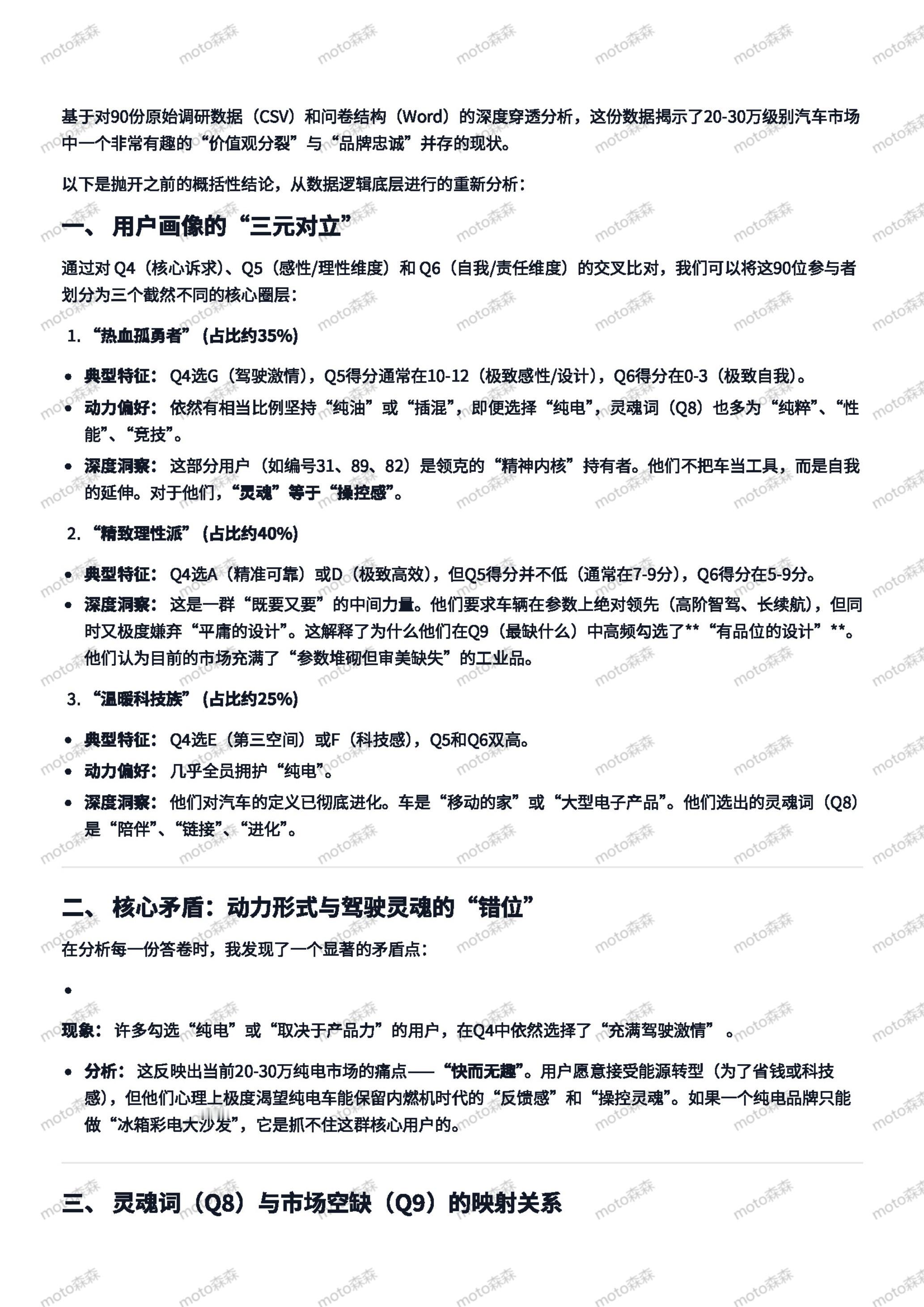 之前关于领克的问卷,对90份反馈的ai分析——总之就是矛盾,非常矛盾图4的气泡图是基于图3的问题4 5 6制作的,直接的选项和坐标系体现出来的分歧很大