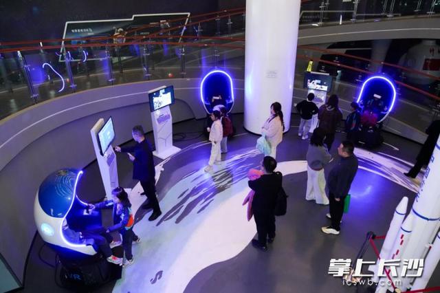 最让孩子们兴奋的,当属航天航空厅的VR火箭升空体验。戴上VR眼镜,孩子们仿佛瞬间置身火箭发射基地。“3、2、1,发射!”随着倒计时结束,眼前的画面骤然切换,火箭轰鸣着冲破云层,穿过大气层,脚下的城市逐渐缩小成一个个光点,浩瀚宇宙的壮丽景象尽收眼底。孩子们或紧握拳头或发出惊叹,沉浸式感受着火箭升空的震撼。