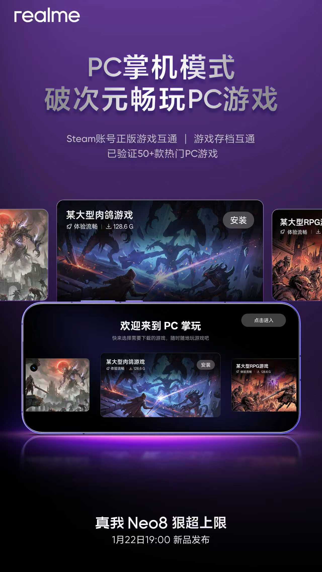 这个好!真我 Neo8 全新PC掌机模式,手机秒变Steam掌机,PC游戏随时玩!Steam账号登陆,保障已购正版游戏互通,并支持游戏存档全平台互通。现已验证适配50+款热门PC游戏,支持《空洞骑士:丝之歌》《哈迪斯2》《古墓丽影9》等游戏流畅运行,并适配游戏手柄操作。户外露营、宿舍床上、飞机高铁等差旅通勤,随时随地开启掌上电竞房体验,将正版Steam庞大游戏库装进口袋,一键启动嗨玩到底。