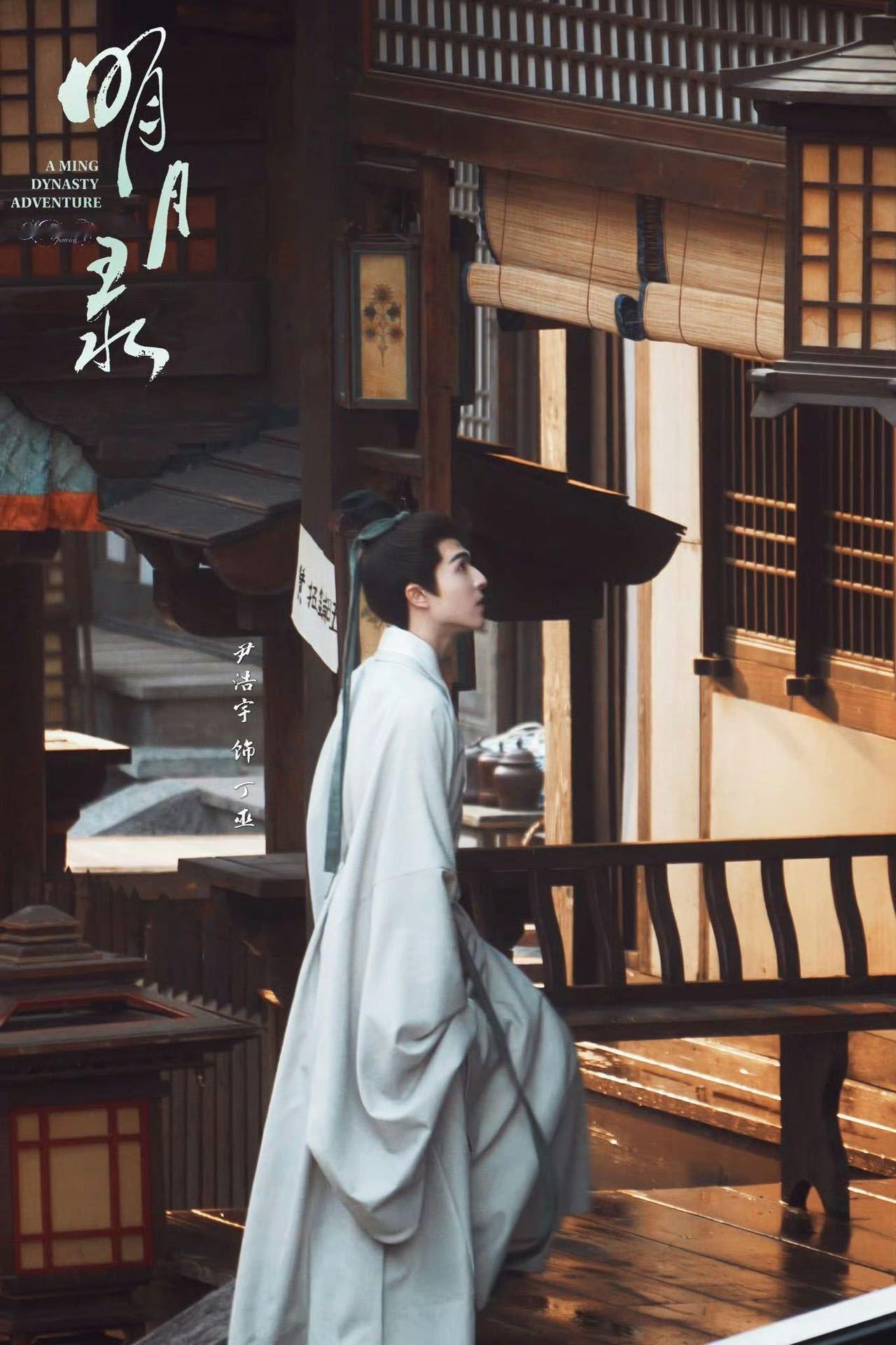 尹浩宇明月录首演古装谁还没看的《明月录》古装路透!一袭白衣,手持书卷,清冷疏离的