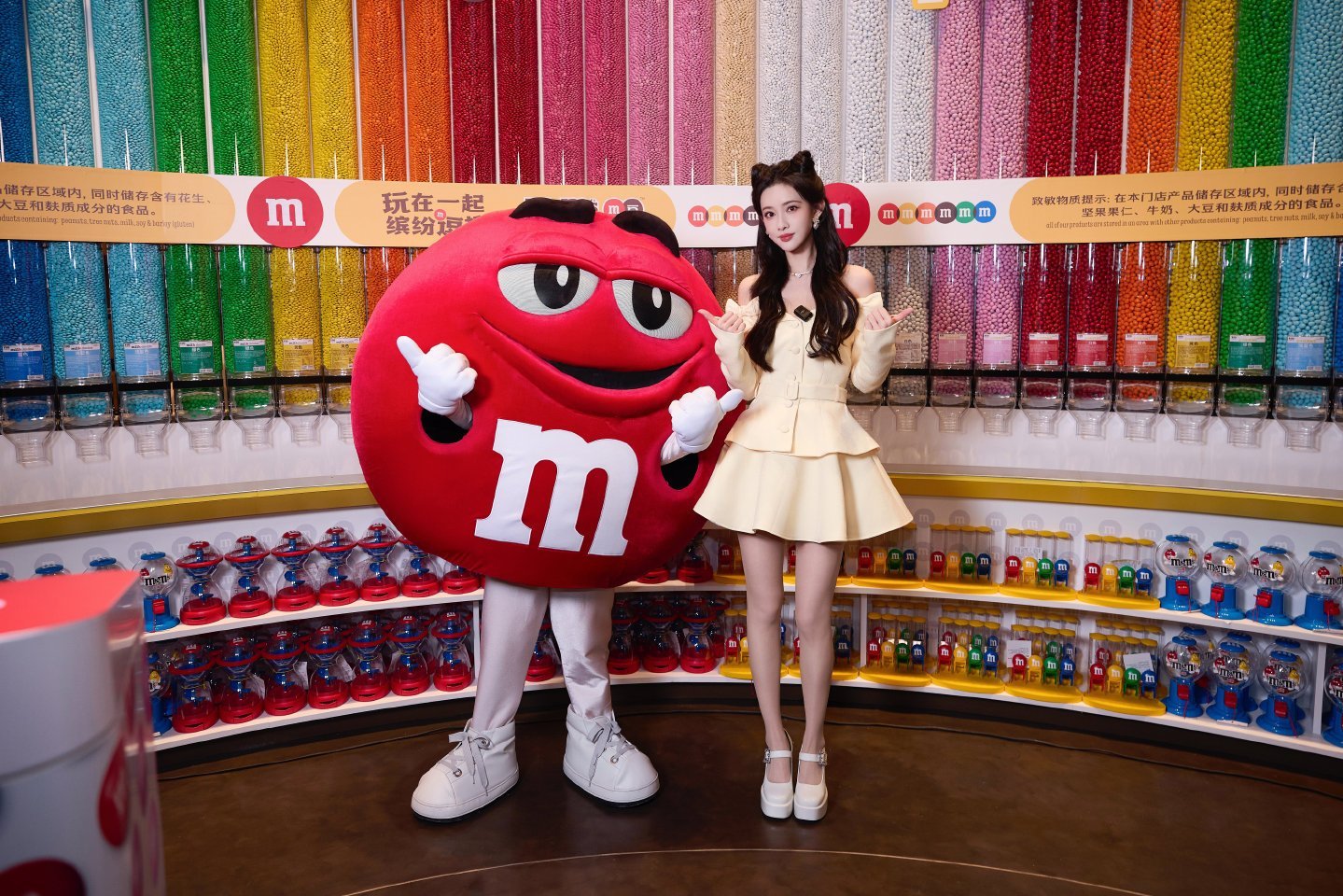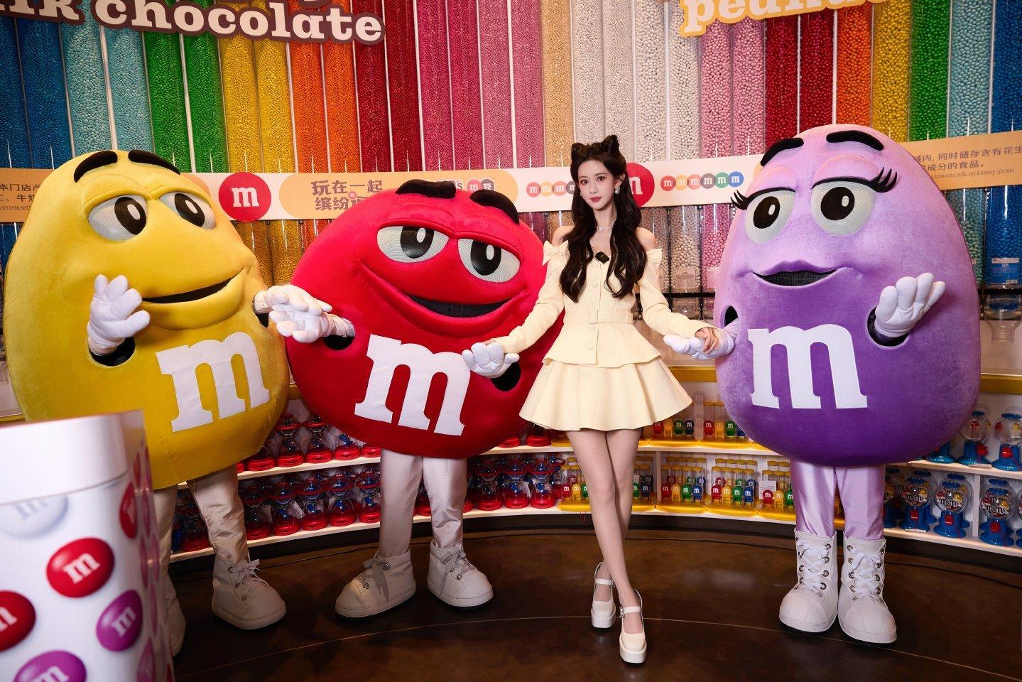 孟子义亮相 M&M'S 品牌活动,一袭米白色露肩裙搭配蝴蝶结设计,尽显甜美灵动气质。活动现场,她与 M 豆人偶趣味互动,徜徉于缤纷糖果氛围中,仿佛开启了一段梦幻十足的甜蜜旅程。孟子义孟子义