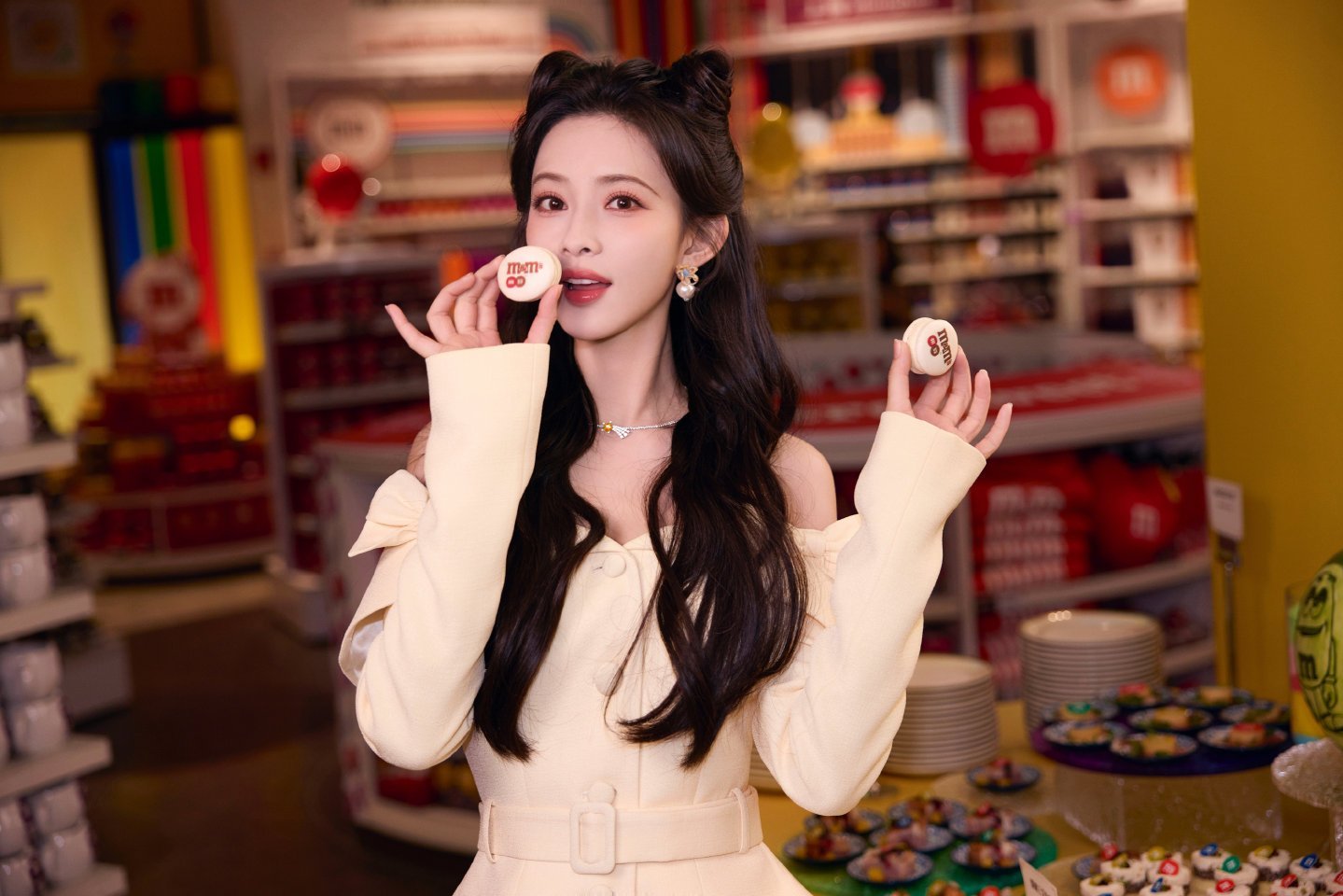 孟子义亮相 M&M'S 品牌活动,一袭米白色露肩裙搭配蝴蝶结设计,尽显甜美灵动气