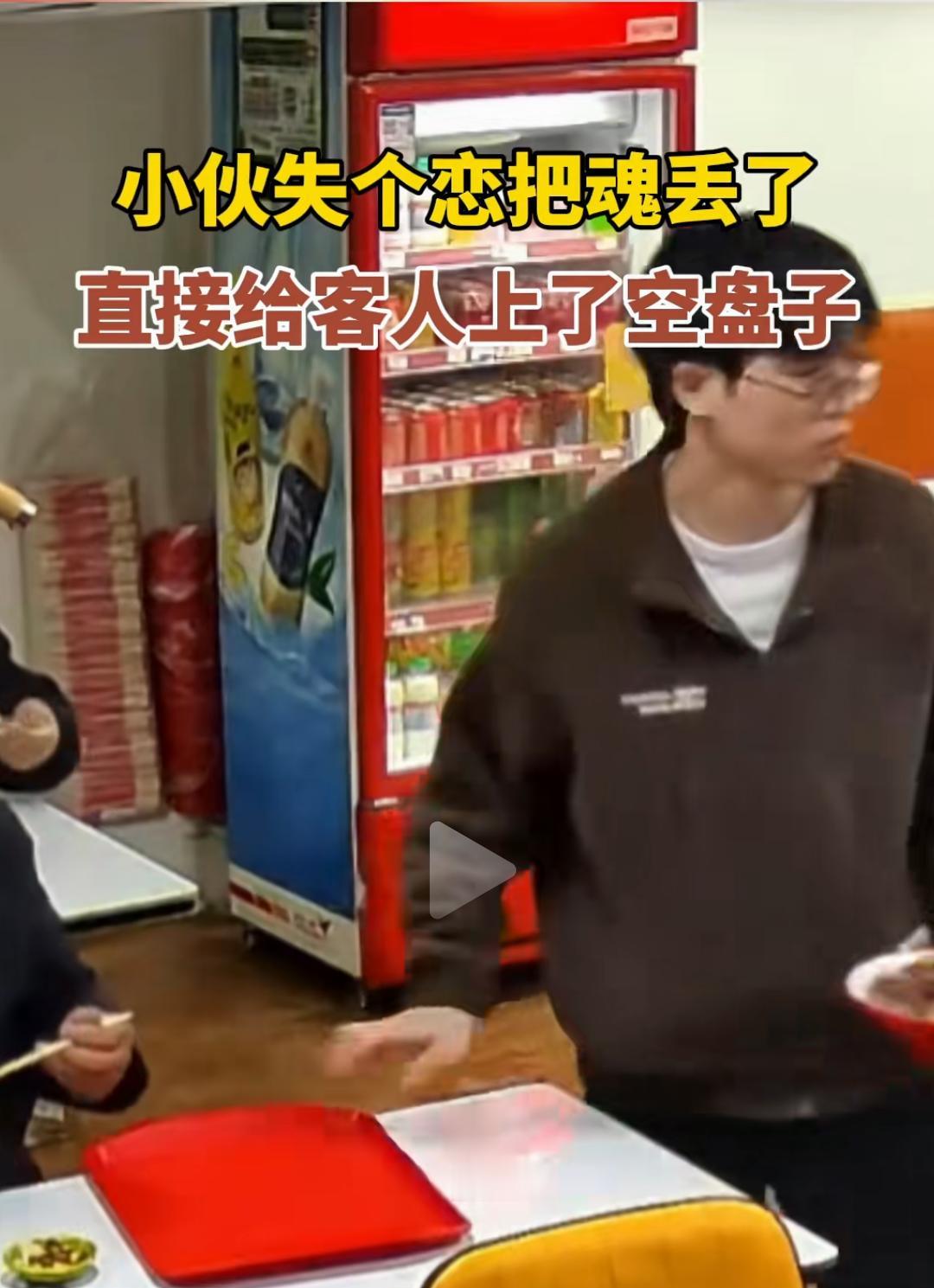 小伙失恋给客人上空盘 ​1月19日,安徽。小伙失恋魂丢了 直接给客人上空盘。 ​
