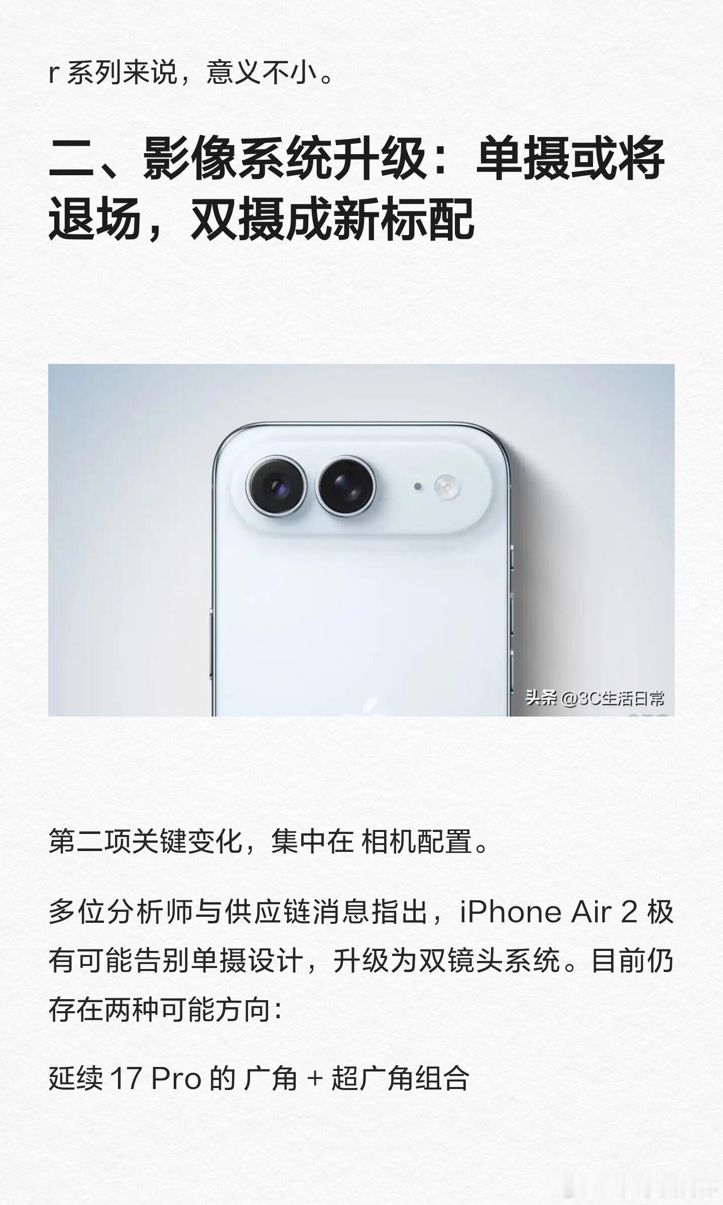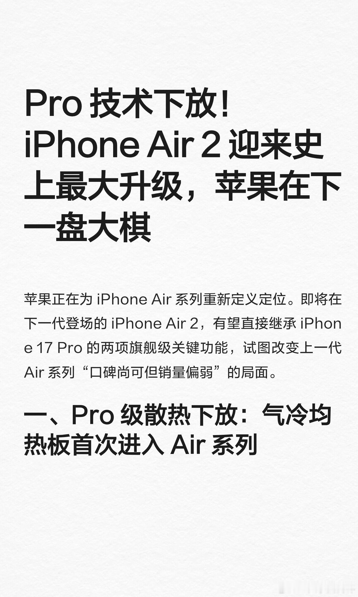 iPhoneAir2新爆料Pro 技术下放!iPhone Air 2 迎来史上最