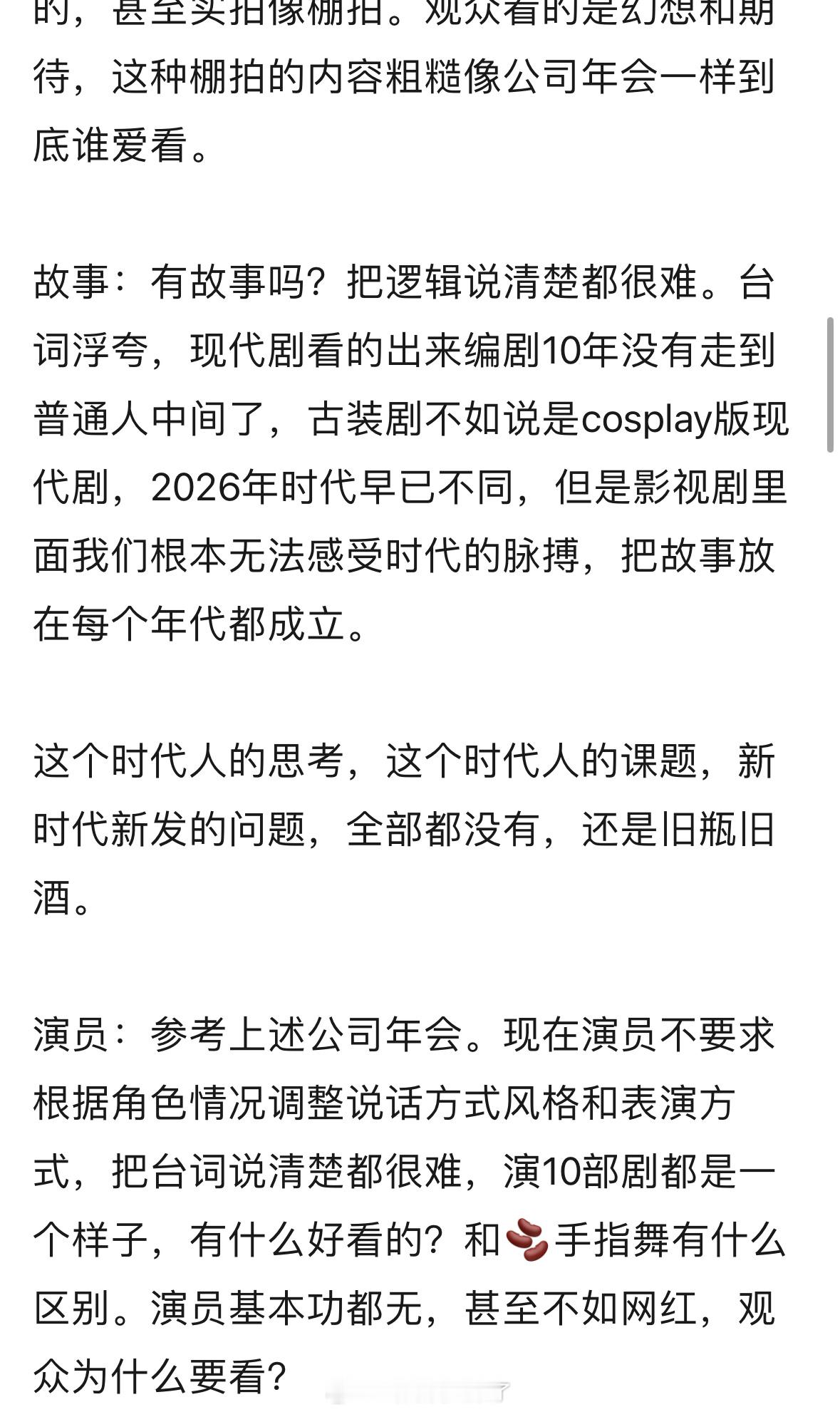 长剧衰落原因本质上是不是观众在进步,影视剧止步不前。服化道做不好,甚至连最基本的