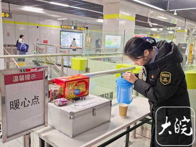 据悉,为给一线户外工作者驱散寒意、补充能量,合肥轨道迅速行动,在全线网183座车站提供专属暖心服务,在7条运营线路的多个具备条件车站,精心打造了暖心休息点,备好热气腾腾的热水、红糖姜茶,还贴心为户外工作者、有需要的市民准备了暖宝宝和应急药品。