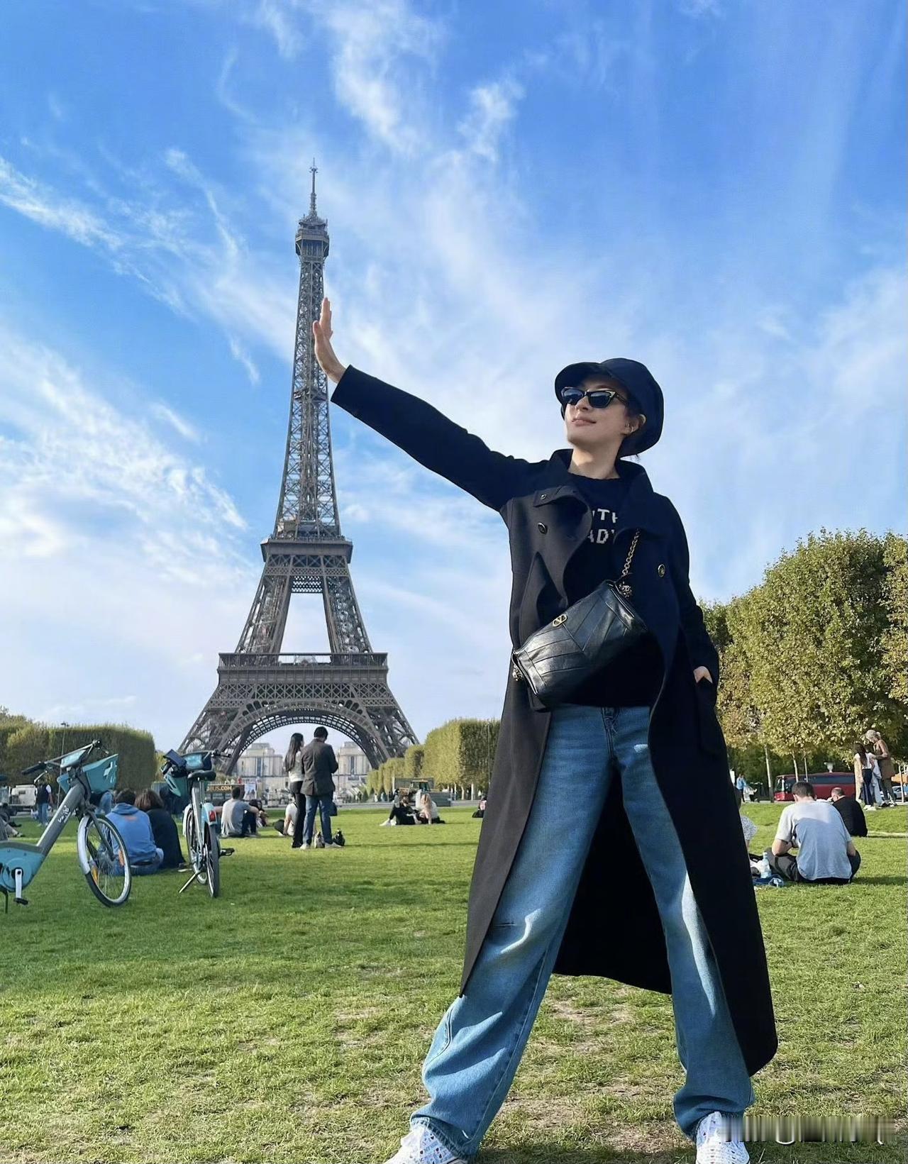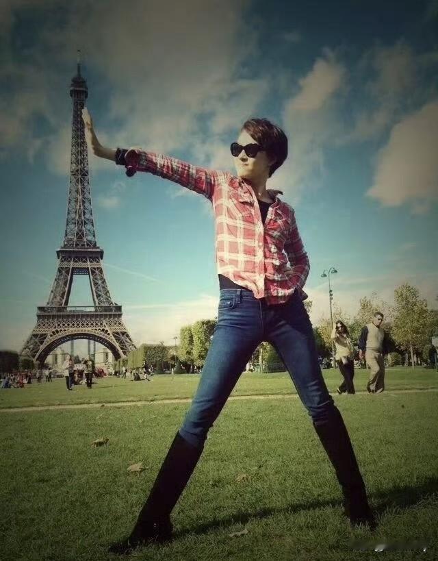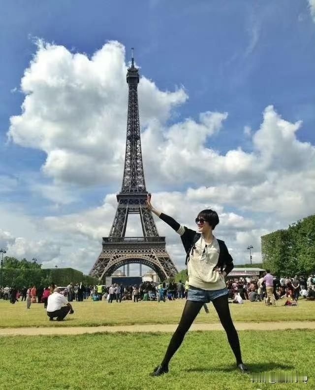 孙俪故地重游,原地打卡埃菲尔铁塔,这么多年了她依旧留的是标志性短发。