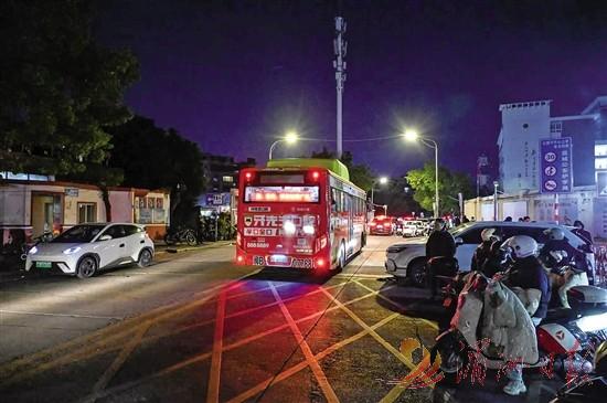 学生在晚自习结束后,乘坐校园定制公交专线回家。全媒体记者杨怡玲摄