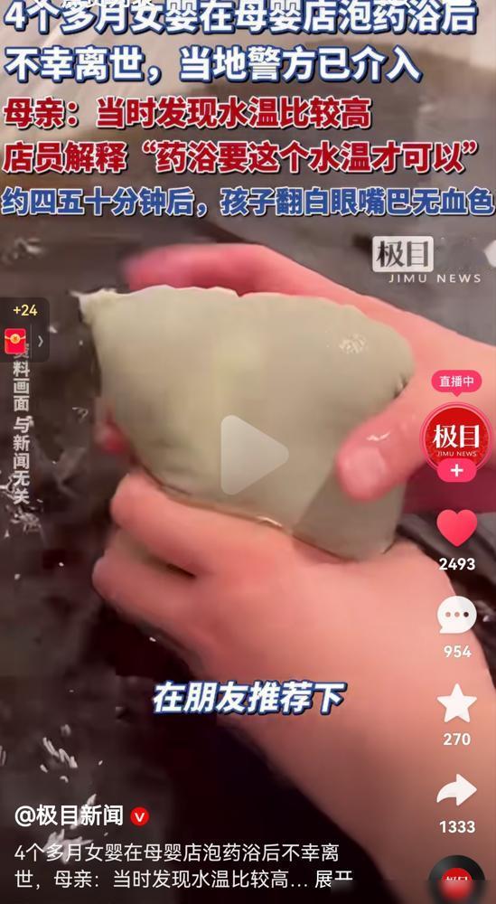 妈妈的心有多疼啊!太揪心了!近日,云南曲靖一位妈妈,因为4个月大的女儿有点感冒,在朋友的推荐下,带孩子去母婴店泡药浴。 ​ 看到这里,心都揪紧了。一个才四个月的小生命,就这样没了。妈妈该有多绝望。 ​ 这根本不是简单的意外。母婴店凭什么给人做药浴?这已经超出了它的经营范围。店员那句“药浴就得这个温度才有效”,听着就吓人。他们有什么医学资质?敢对婴儿下这样的判断。 ​ 查查资料就知道,婴儿药浴不是随便泡的。新生儿的皮肤屏障多脆弱啊。体温调节中枢根本没发育好。泡在高温水里四五十分钟,想想都可怕。这跟烫伤有什么区别?根本不是治病,是要命。 ​ 更可气的是,这种乱象不是第一次了。很多母婴店、养生馆,都在偷偷搞这些“服务”。推拿、药浴、艾灸,说得天花乱坠。好像比医院还厉害。其实就是抓住家长着急的心理,赚黑心钱。 ​ 家长也有责任。孩子生病,第一反应应该是去医院。怎么能相信母婴店呢?朋友推荐也不行啊。这是拿孩子的命在赌。现在后悔也晚了。 ​ 但最主要的板子,必须打在无良商家身上。他们为了赚钱,什么都敢说,什么都敢做。出事了,一句“不懂”就能推卸责任吗?这是漠视生命,必须严惩。 ​ 监管部门也该动真格了。这种挂羊头卖狗肉的店,平时怎么监管的?有没有查处?不能总是出了事才介入。要防患于未然,把这些害人的项目彻底清理掉。 ​ 一条小生命,换来的教训太沉重了。家长们一定要清醒。孩子的健康,只能交给专业的医疗机构。任何非医疗机构的“保健”、“治疗”,都要打个大大的问号。宁可谨慎一点,也别抱侥幸心理。 ​ 这件事说到底,是对生命的敬畏问题。赚钱要有底线,为人父母更要清醒。别让爱,成了害。希望这样的悲剧,再也不要发生了。 ​