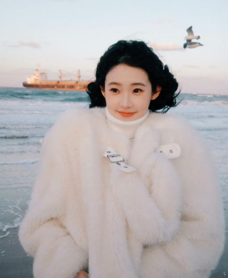 张艺凡咋萌成萨摩耶了 谁被张艺凡萌化了!冬日海边的奶白造型,扎着小揪揪浑身毛茸茸
