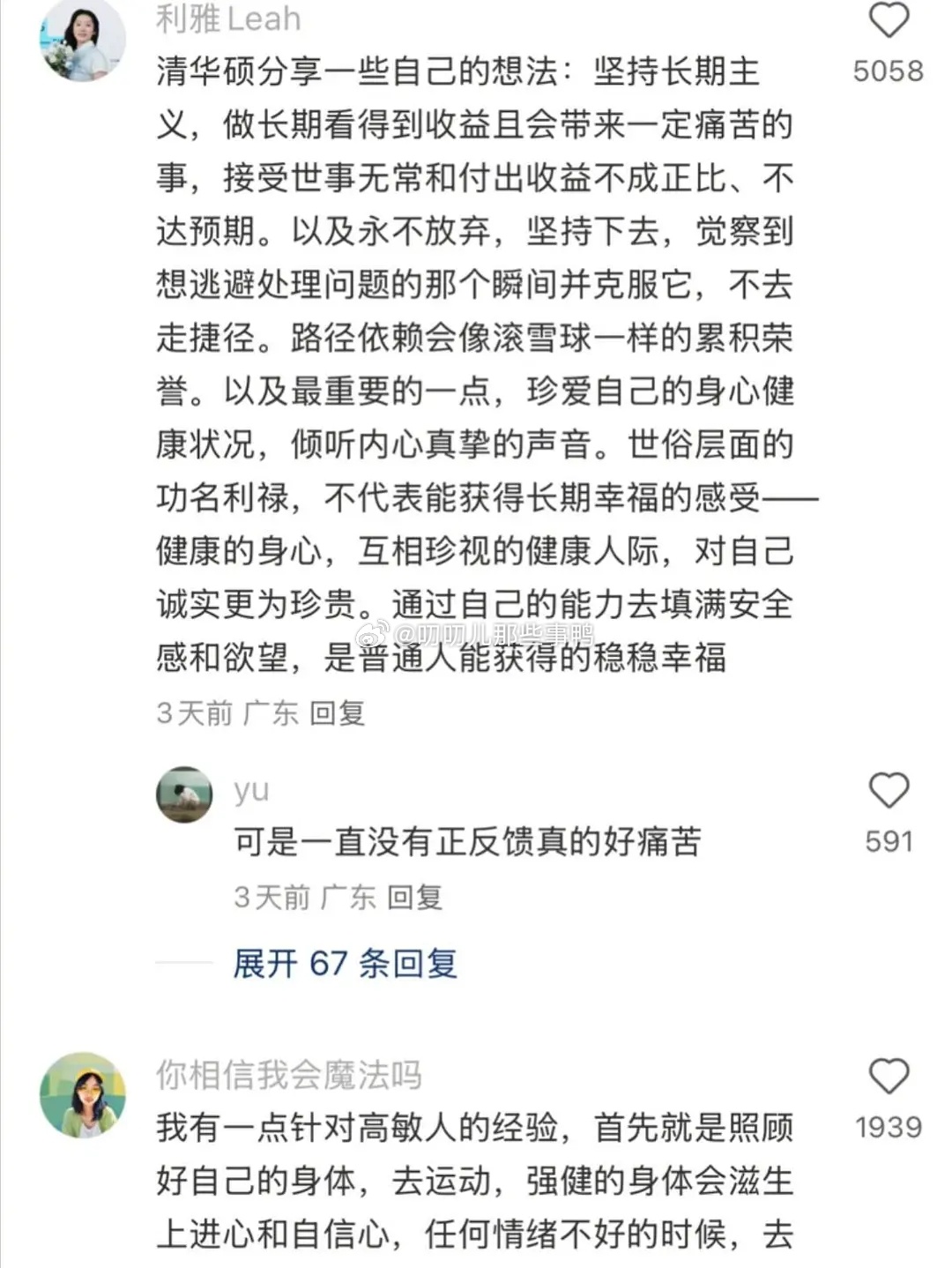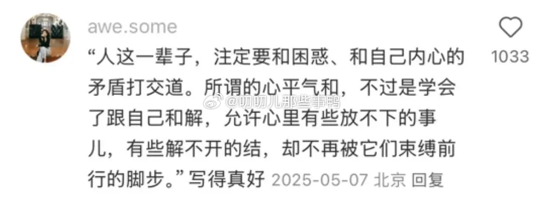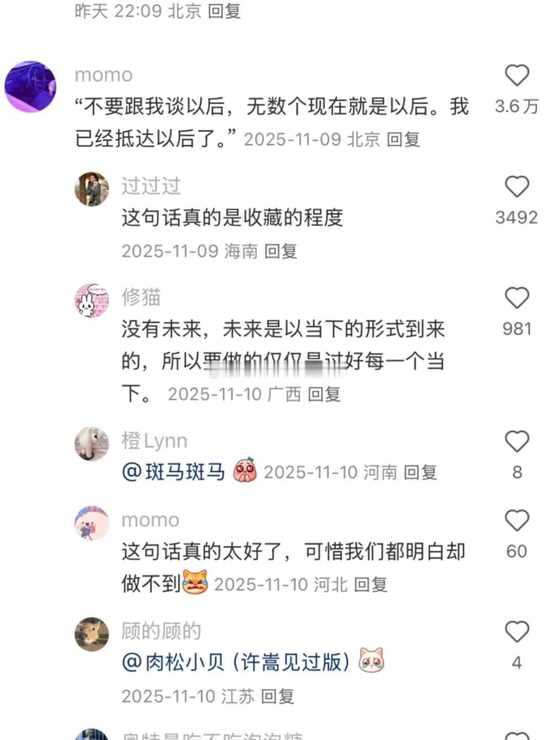 突然被这段话释怀了:“人生的结局都是死亡,那就说明人生的意义在于体验。人生没有