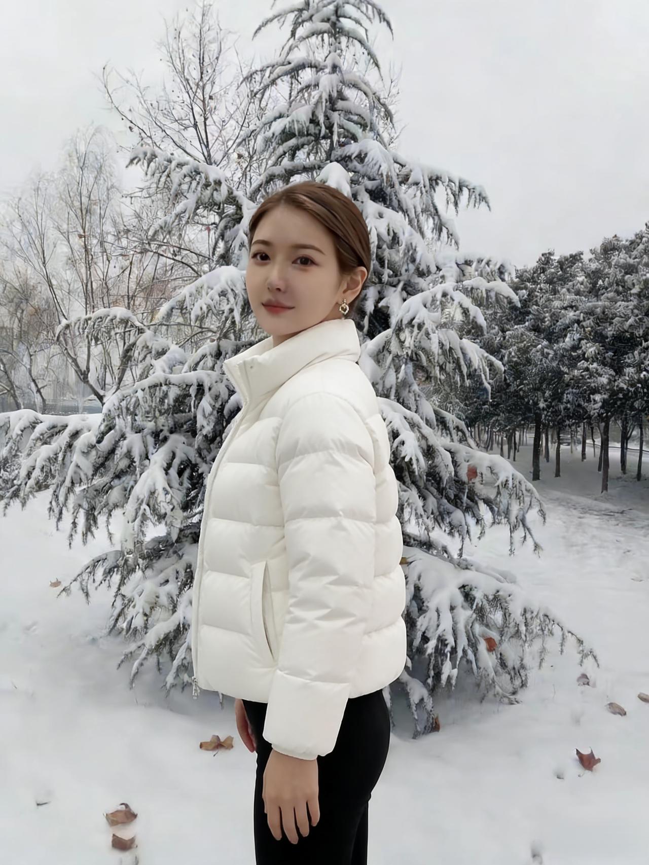 雪在下,在松针的缝隙里织网 网住了冬日的光,也网住一个身影 她的白羽绒服,是雪的姊妹 在雪地站定,便与天地相融 ~ 指尖轻触空气,雪粒便黏在指尖 像星星落下来,停在她的掌心 转身时,黑色的裤摆扫过雪地 留下浅浅的痕,是雪的掌纹 ~ 她望向上方,雪落进她的视线 把天空的蓝,揉进眼里的湖 那些光秃秃的树,因为她的驻足 也有了温柔的轮廓 羽绒服的拉链半开,漏出一点人间的暖 对抗着冬日的寒 ~ 雪地里的脚步声,轻得像羽毛 她走或站,都是雪的旋律 风穿过树林,带来远处的河声 而她是这雪幕里,最鲜活的音符 把冬天的静,唱成了柔软的歌 雪落满肩头,她却像捧着一束花 在寒里,开着属于自己的暖